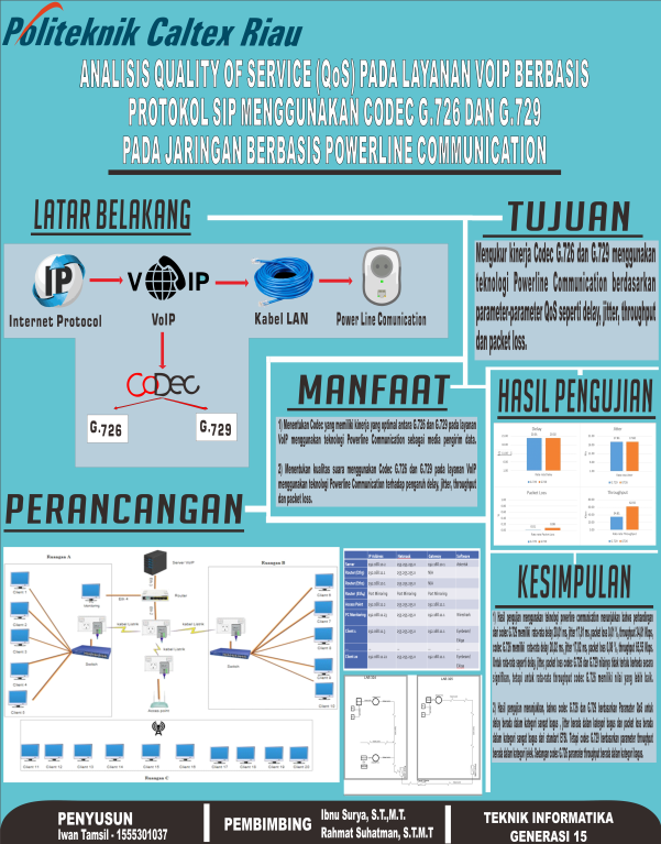 Analisis Quality Of Service (QOS) pada layanan VoIP berbasis protokol SIP Menggunakan Codec G.726 dan G.729 pada Jaringan Berbasis Powerline Communication