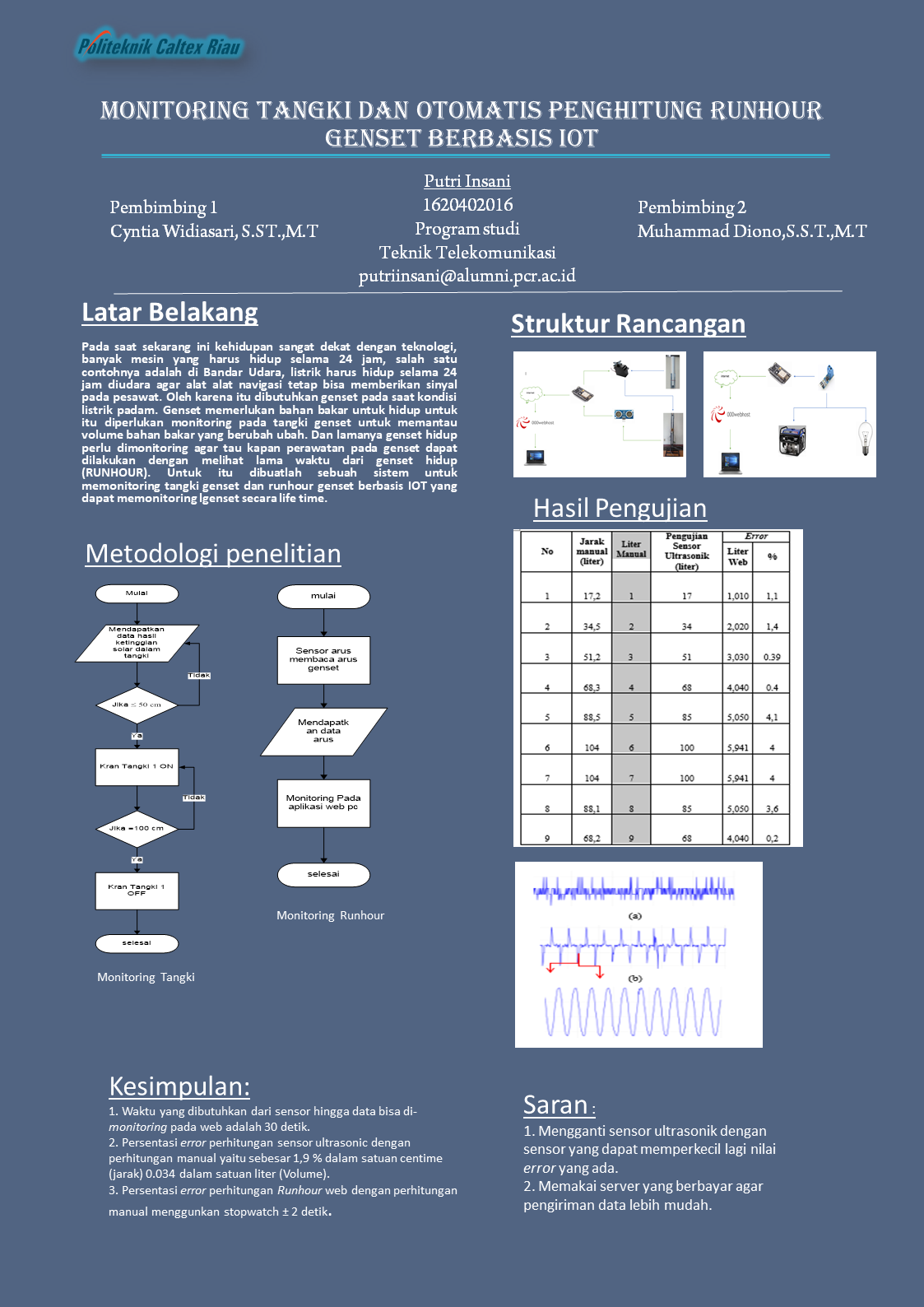 Kata kunci: Tangki Genset, RunHours, Sensor Ultrasonik, Sensor Arus,