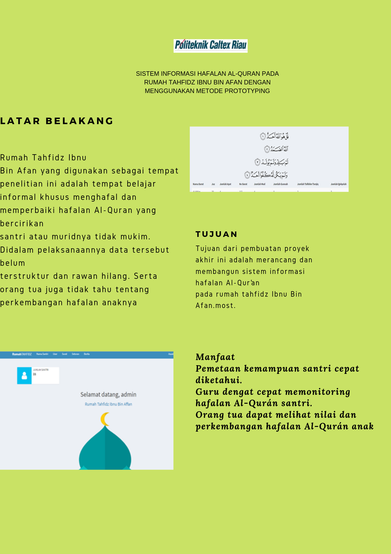 Rumah Tahfidz, sehingga sistem yang dibuat sesuai kebutuhan.