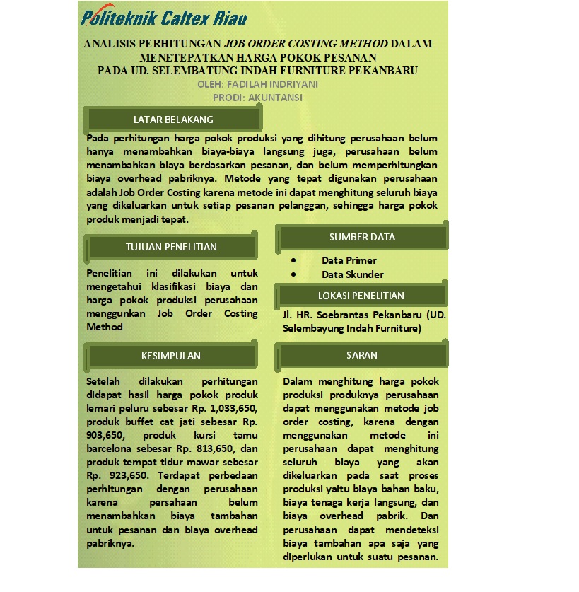Analisis Perhitungan Job Order Costing Method Dalam Menetapkan Harga Pokok Pesanan Pada UD. Selembayung Indah Furniture Pekanbaru