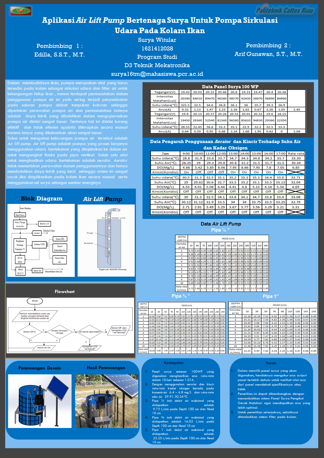Kata kunci : Air Lift Pump , Sel Surya , Aerator, Menstabilkan