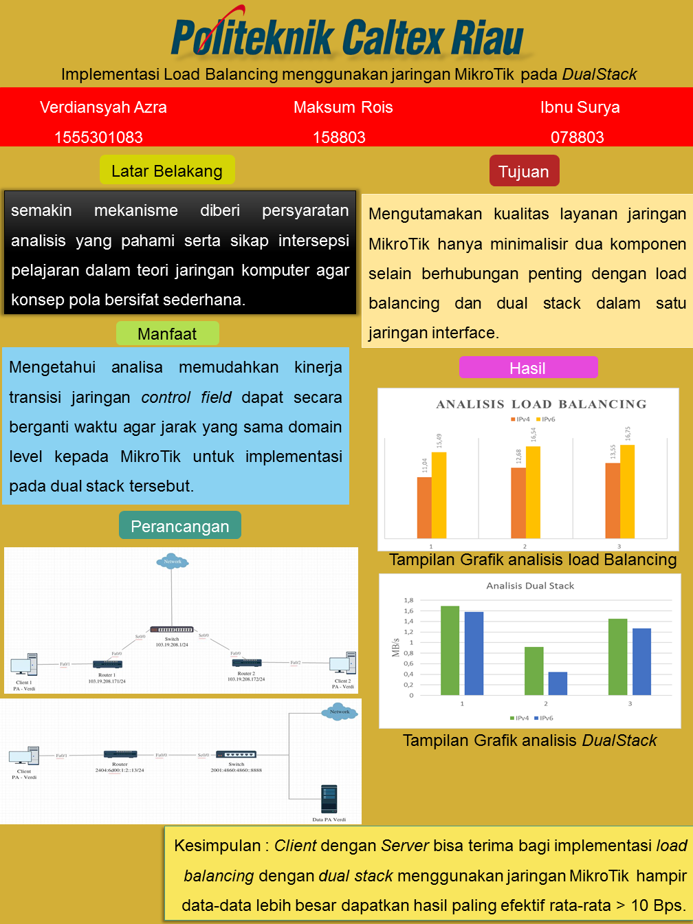 Kata kunci : Load Balancing, MikroTik, DualStack, Wireshark