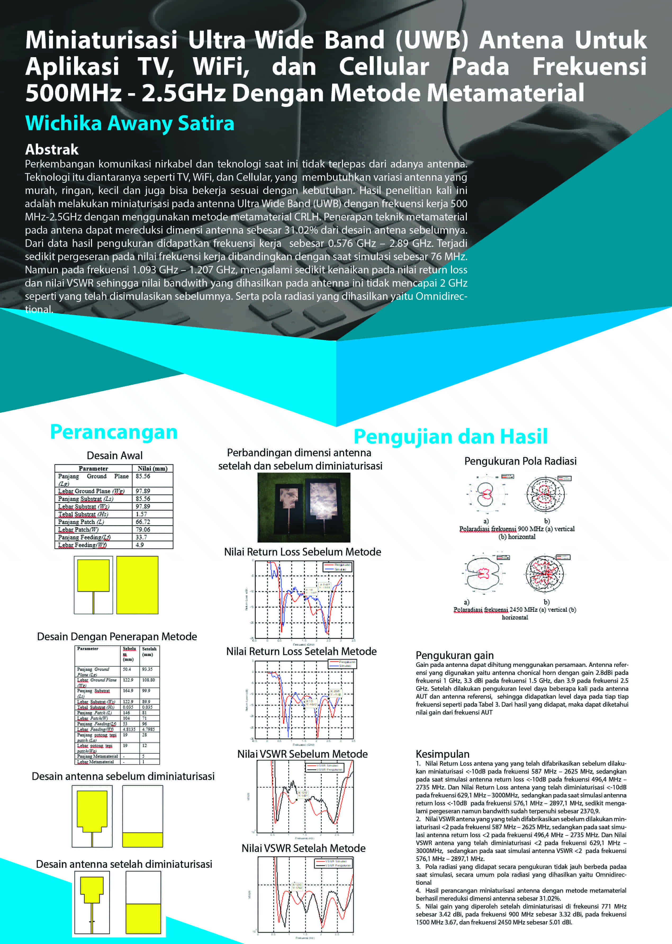Miniaturisasi Ultra Wide Band (UWB) Antena Untuk Aplikasi TV, WiFi, dan Cellular Pada Frekuensi 500MHz - 2.5GHz Dengan Metode Metamaterial