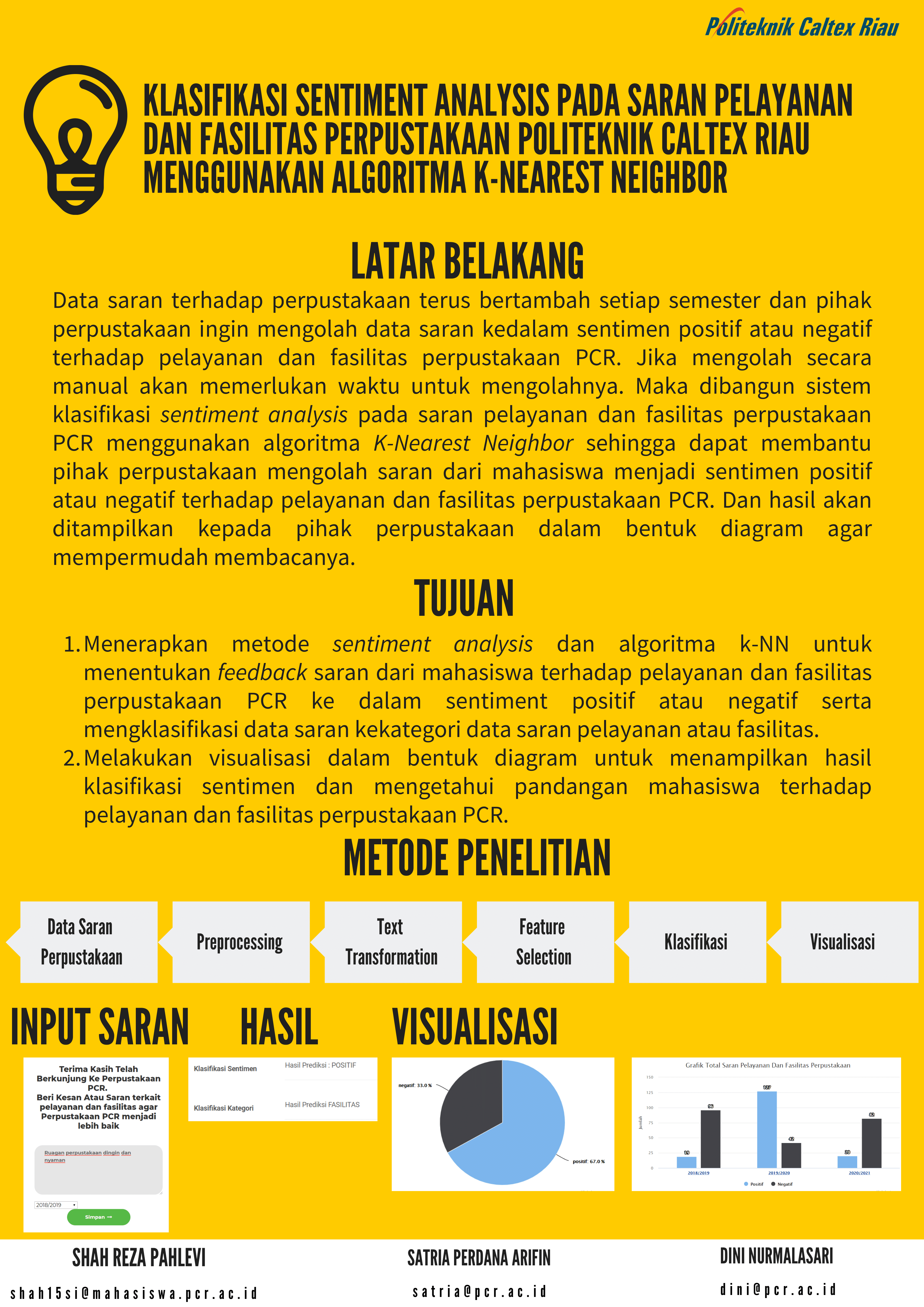 Klasifikasi Sentiment Analysis pada Saran Pelayanan dan Fasilitas Perpustakaan Politeknik Caltex Riau menggunakan Algoritma K-Nearest Neighbor POLITEKNIK CALTEX RIAU MENGGUNAKAN ALGORITMA K-NEAREST NEIGHBOR