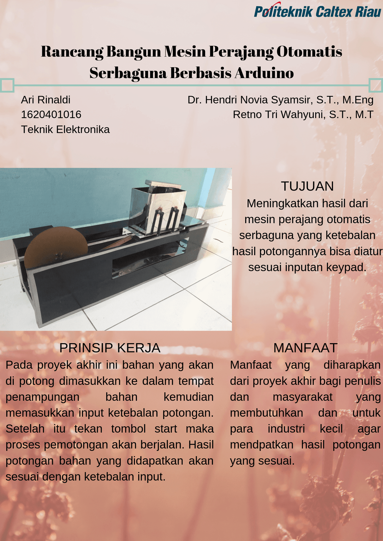 Rancang Bangun Mesin Perajang Otomatis Serbaguna Berbasis Arduino