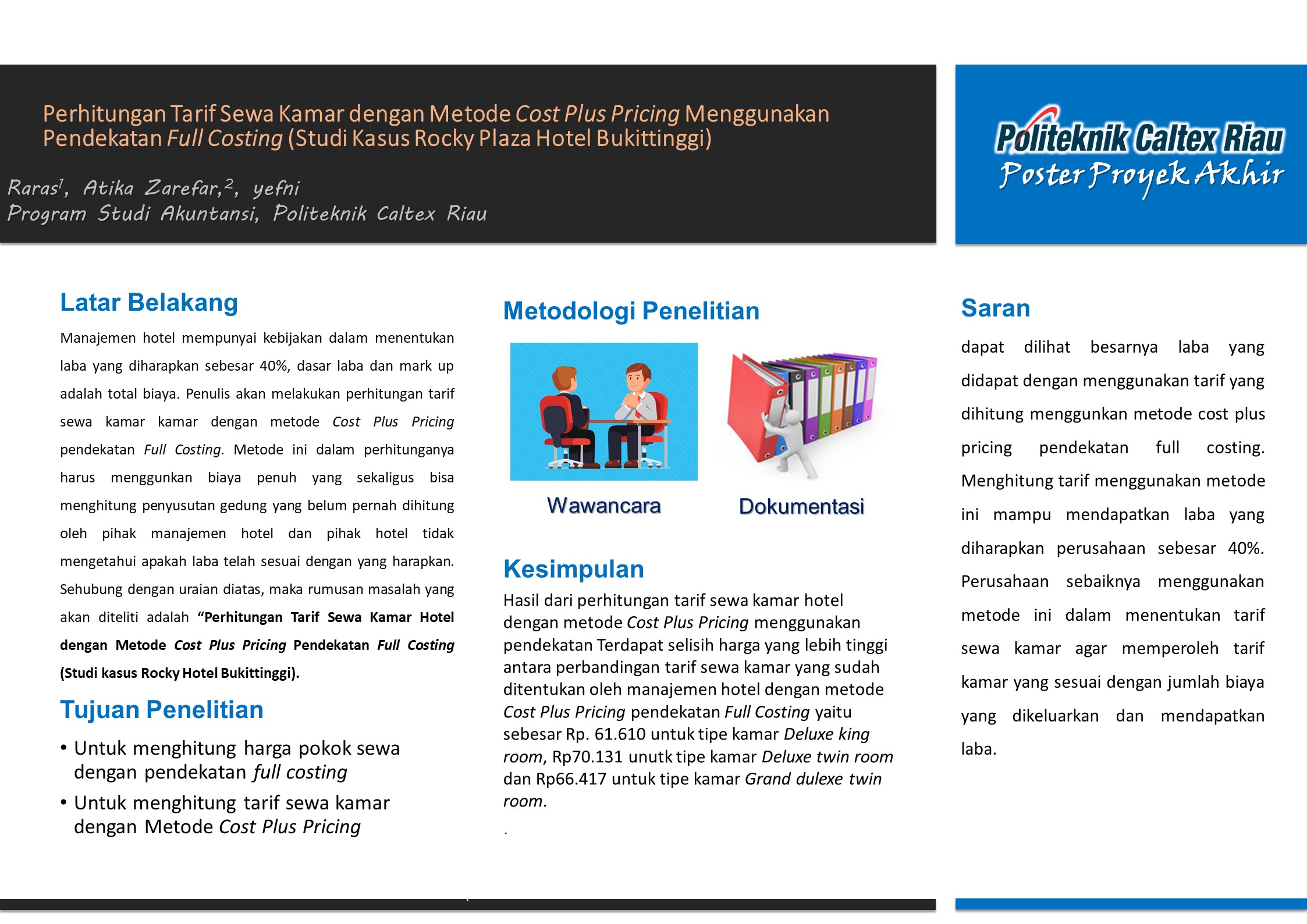 Perhitungan Tarif Sewa Kamar dengan Metode Cost Plus Pricing Menggunakan Pendekatan Full Costing (Studi Kasus Rocky Plaza Hotel Bukittinggi)