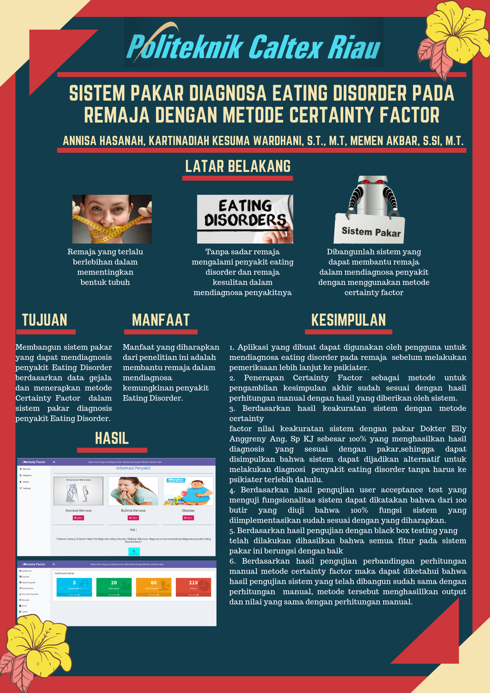 Kata kunci : Sistem Pakar, Eating Disorder, Certainty Factor.