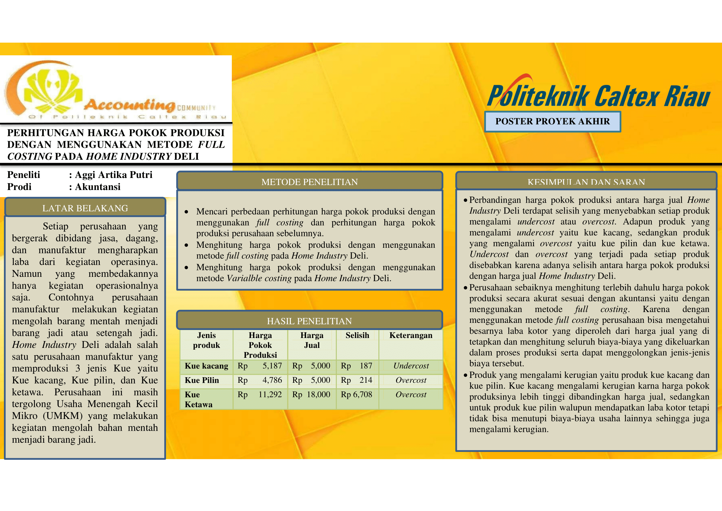 metode full costing. Home Industry Deli tidak pernah melakukan
