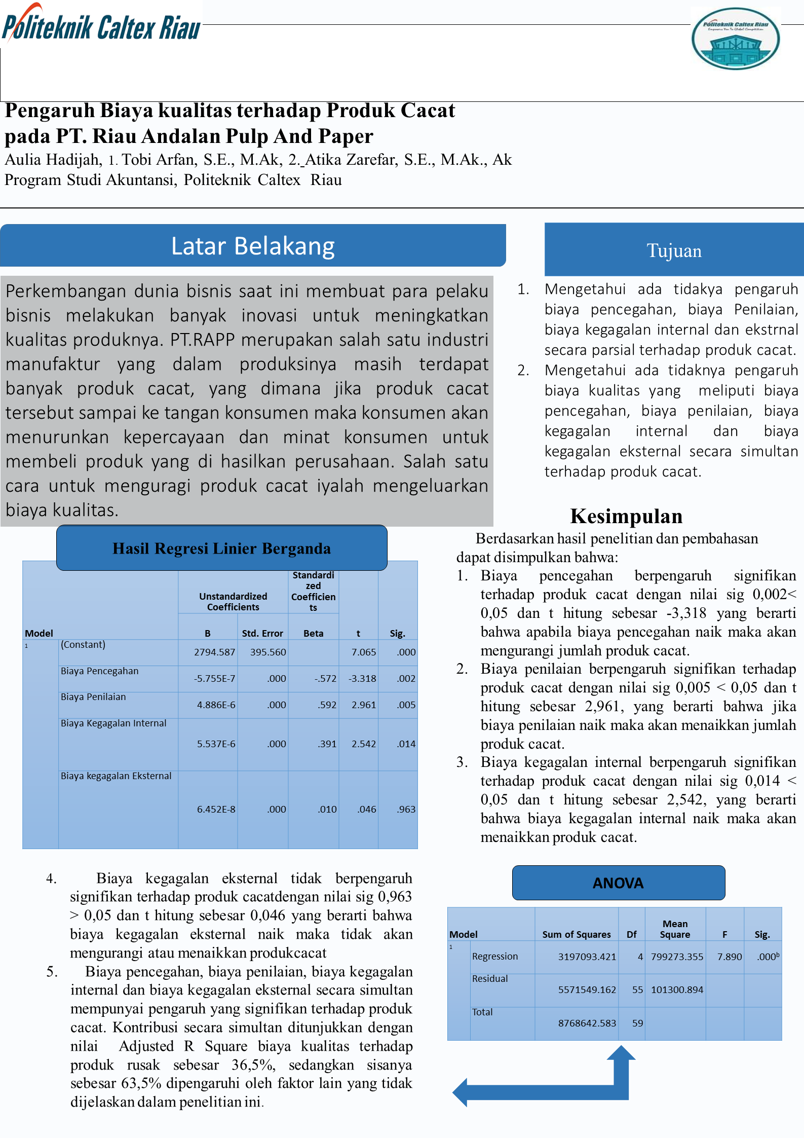 Pengaruh biaya kualitas terhadap produk Cacat pada PT Riau Andalan Pulp and Paper