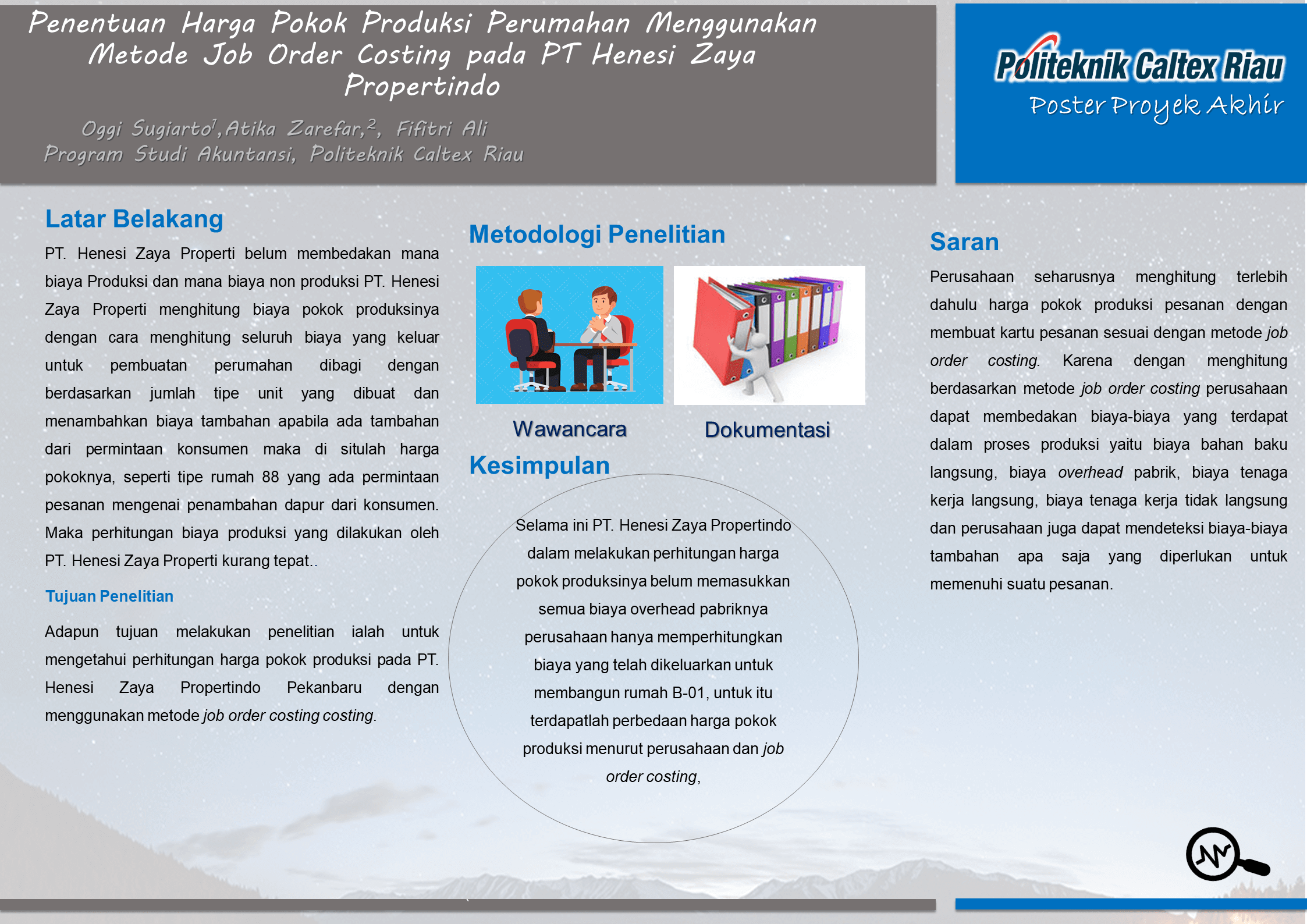 Kata kunci : Harga Pokok Produksi, Job Order Costing, Biaya Overhead