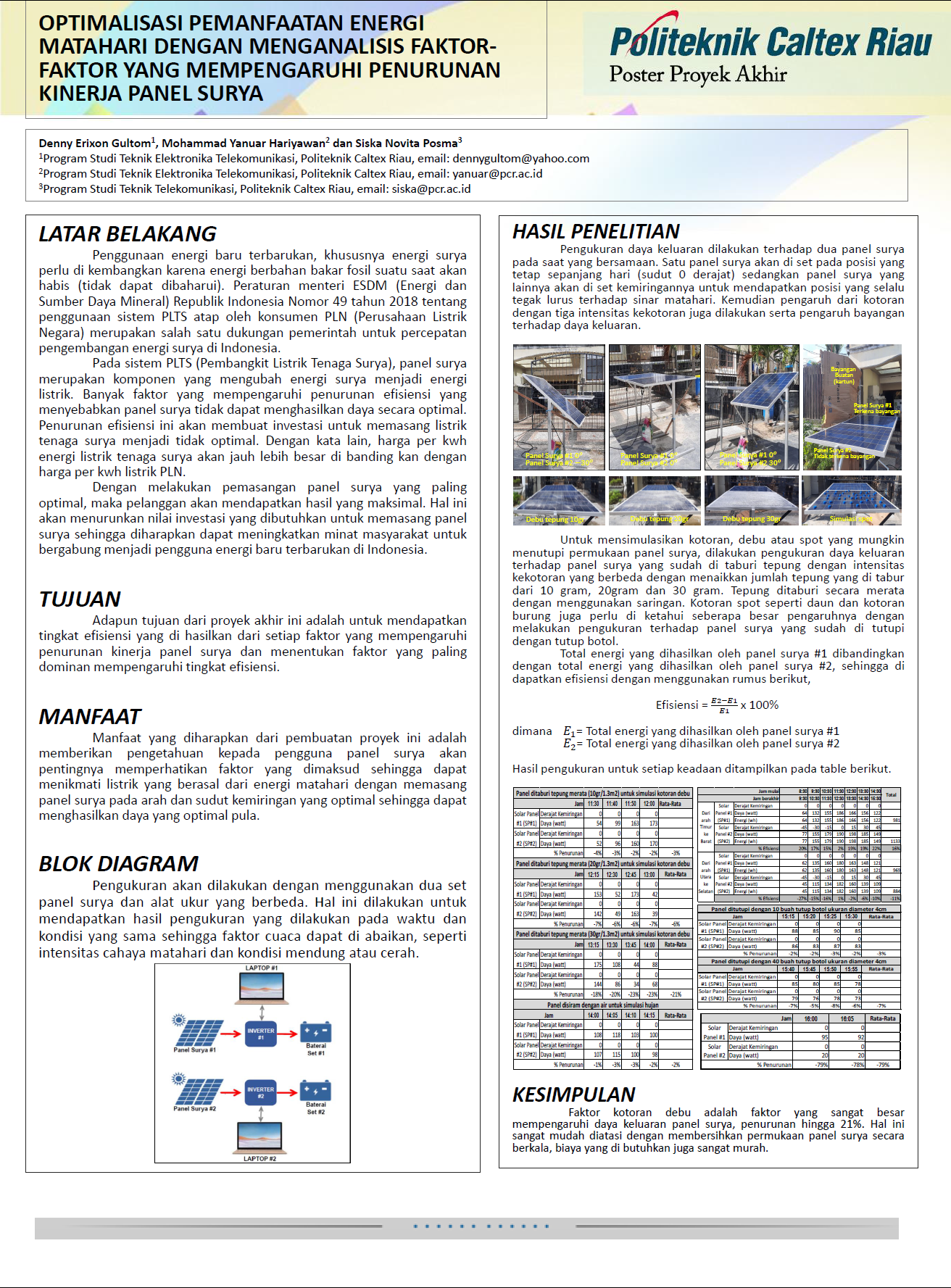Optimalisasi Pemanfaatan Energi Matahari Dengan Menganalisis Faktor-Faktor Yang Mempengaruhi Penurunan Kinerja Panel Surya