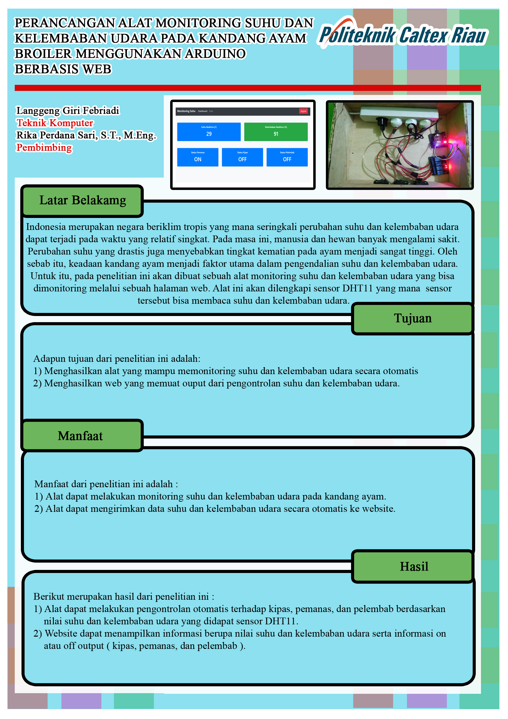 Perancangan Alat Monitoring Suhu dan Kelembapan Udara pada Kandang Ayam Broiler dengan menggunakan Arduino berbasis Web.