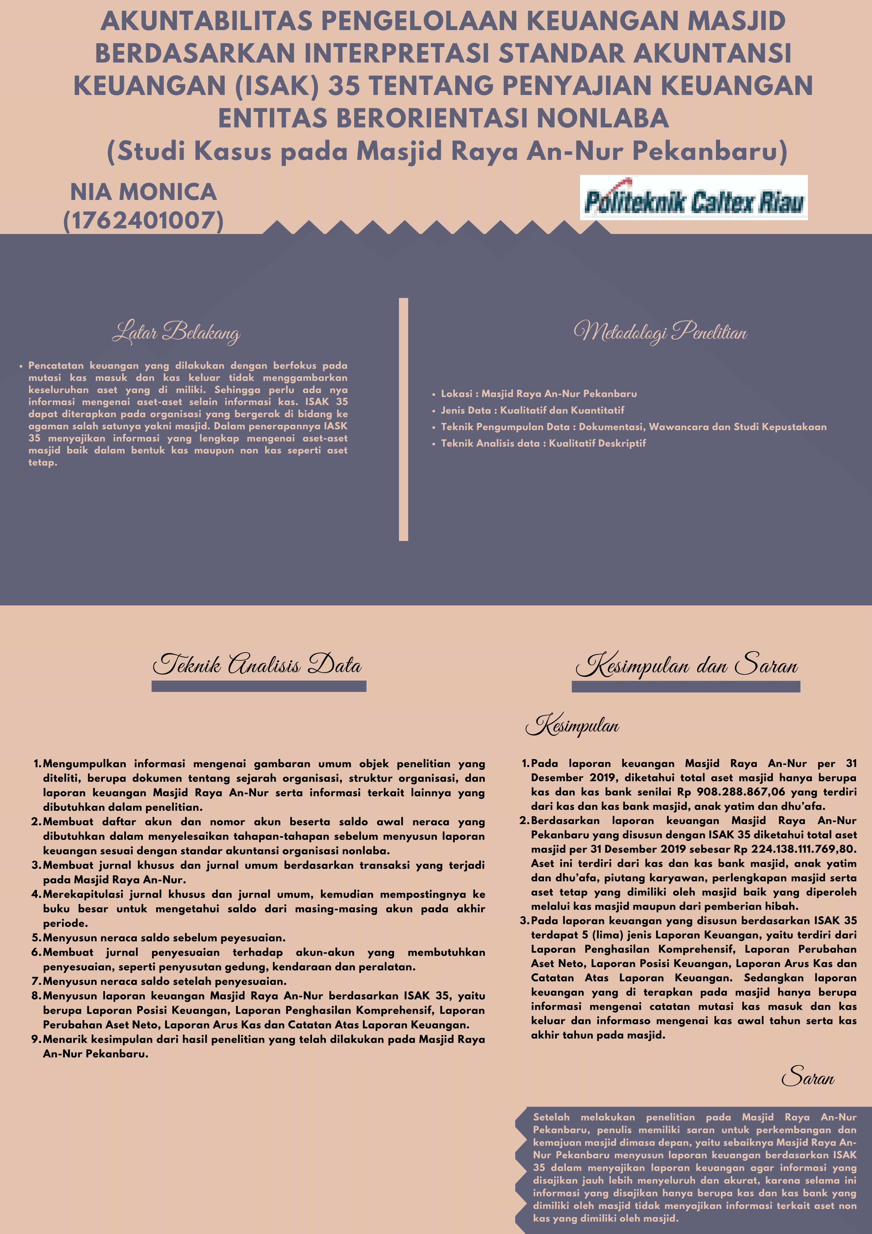 Akuntabilitas Pengelolaan Keuangan Masjid Berdasarkan Interpretasi Standar Akuntansi Keuangan (Isak) 35 Tentang Penyajian Keuangan Entitas Berorientasi Nonlaba (Studi Kasus pada Masjid Raya An-Nur Pekanbaru)