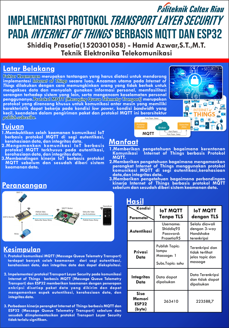 Implementasi Protokol Transport Layer Security pada Internet of Things Berbasis MQTT dan ESP32