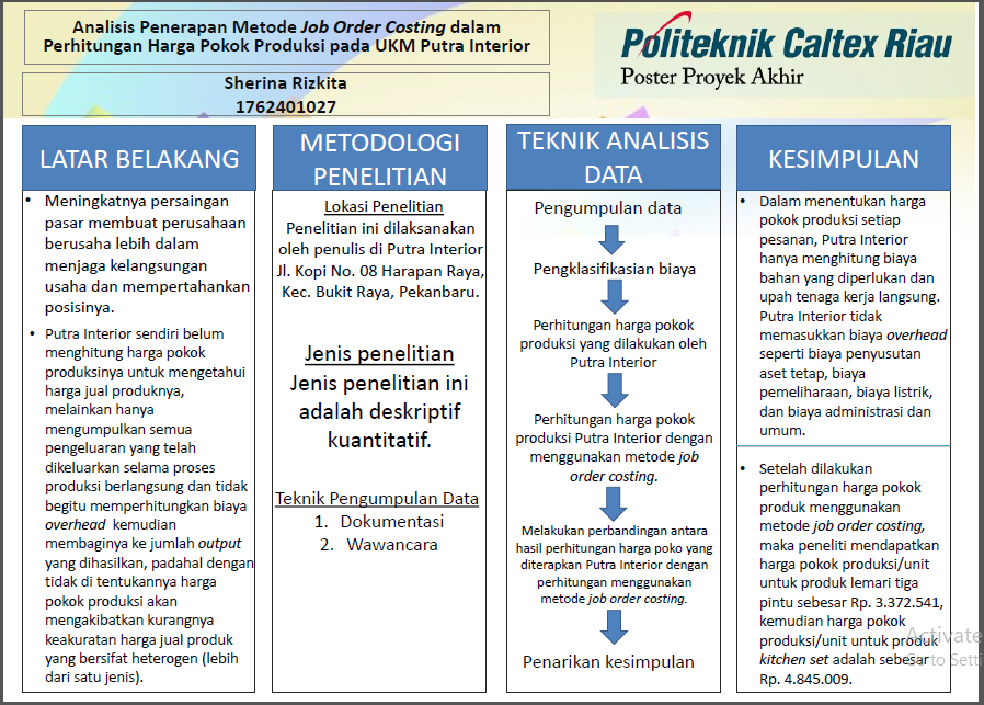 Analisis Penerapan Metode Job Order Costing dalam Pentuan Harga Pokok Produksi pada UKM Putra Interior
