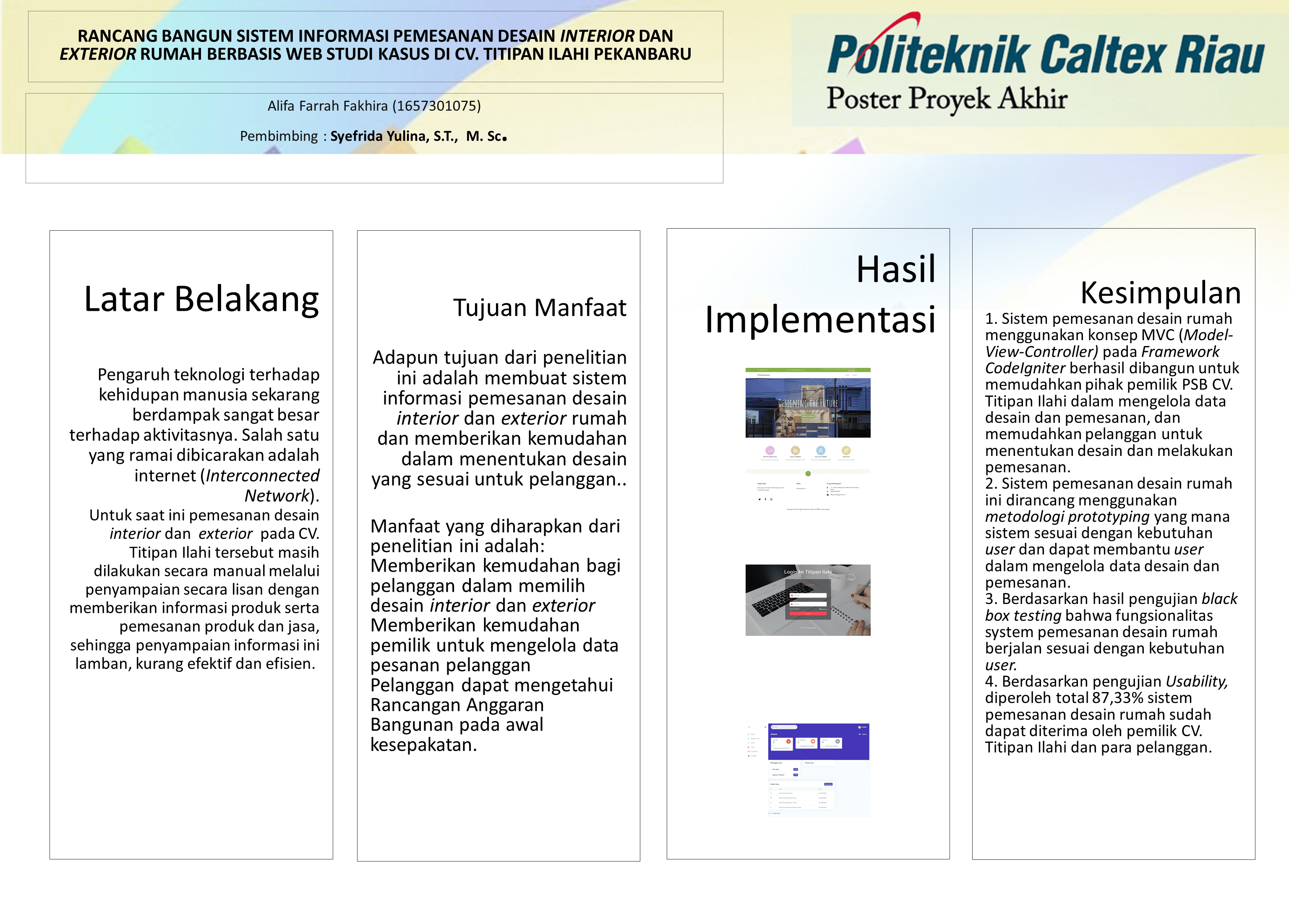Rancang Bangun Sistem Informasi Pemesanan Desain Interior dan Exterior Rumah Berbasis Web Studi Kasus di CV Titipan Ilahi