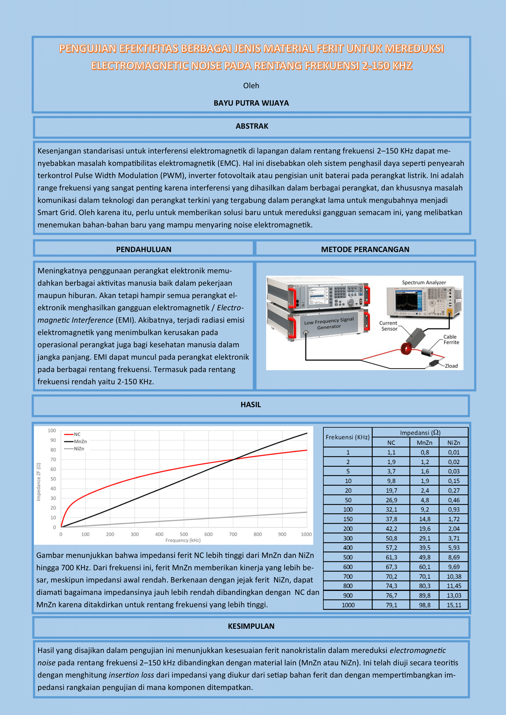 Pengujian Efektifitas Berbagai Jenis Material Ferit Untuk Mereduksi Electromagnetic Noise Pada Rentang Frekuensi 2-150 KHz