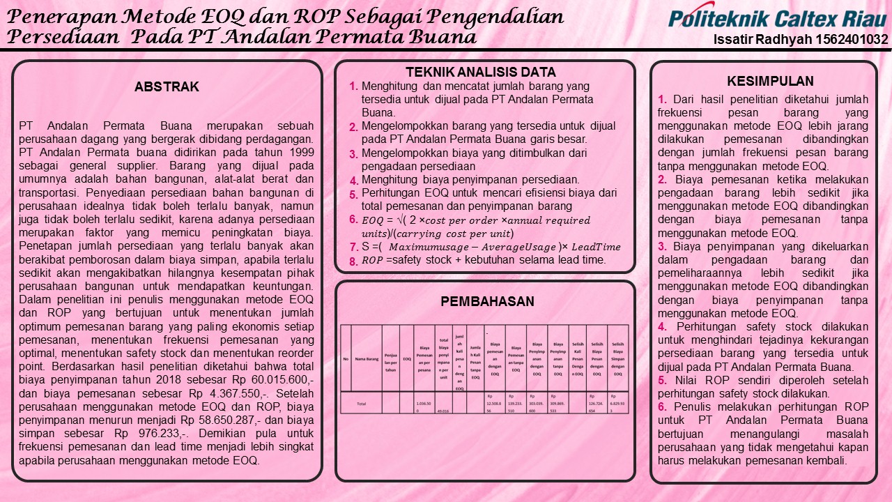Penerapan Metode EOQ dan ROP Sebagai Pengendalian Persediaa Pada PT Andalan Permata Buana
