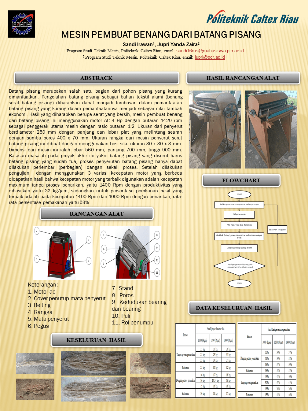 Kata kunci : Mesin pembuat benang dari batang pisang, batang pisang (gedebok pisang)