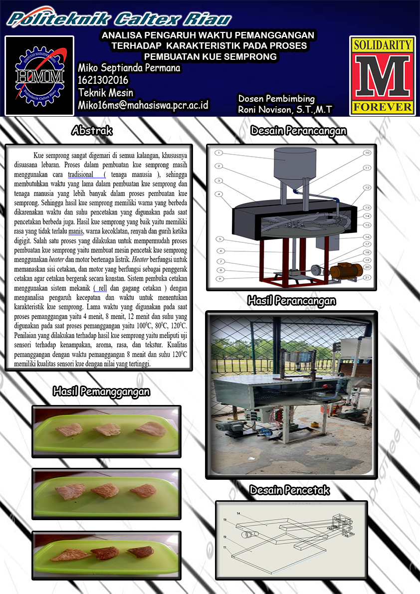 Laporan Proyek Akhir Miko Se Kue semprong sangat digemari di semua kalangan, khususnya disuasana lebaran. Proses dalam pembuatan kue semprong masih menggunakan cara tradisional ( tenaga manusia ), sehingga membutuhkan waktu yang lama dalam pembuatan kue semprong dan tenaga manusia yang lebih banyak dalam proses pembuatan kue semprong.