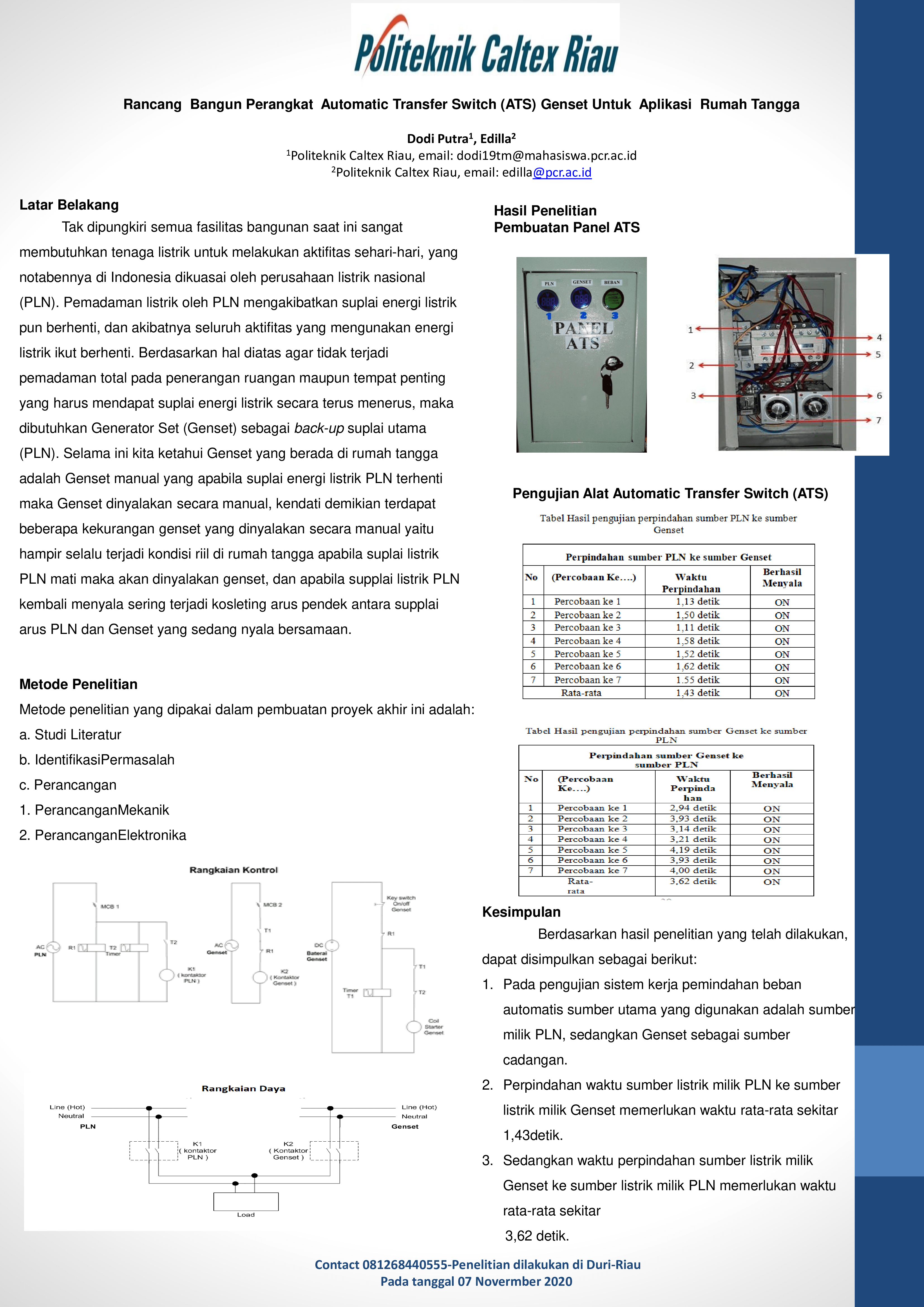 Rancang Bangun Perangkat Automatic Transfer Switch (ATS) Genset Untuk Aplikasi Rumah Tangga