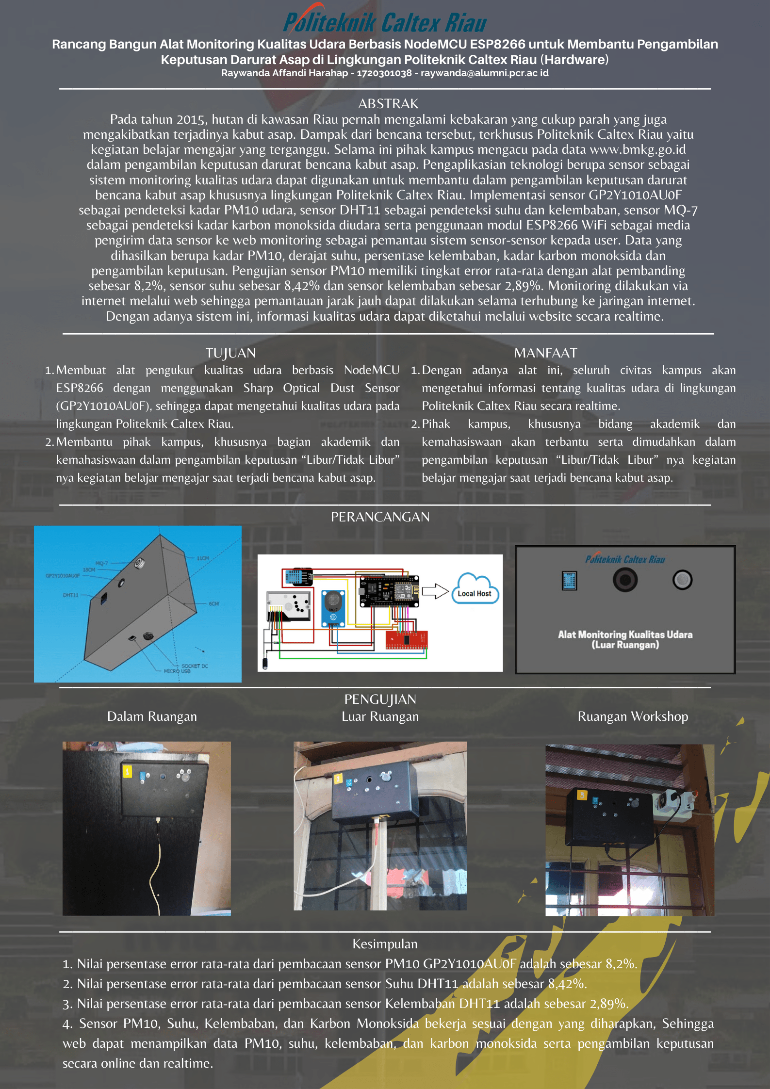 Rancang Bangun Alat Monitoring Kualitas Udara Berbasis NodeMCU ESP8266 untuk membantu Pengambilan Keputusan Darurat Asap di Lingkungan Politeknik Caltex Riau (Hardware)