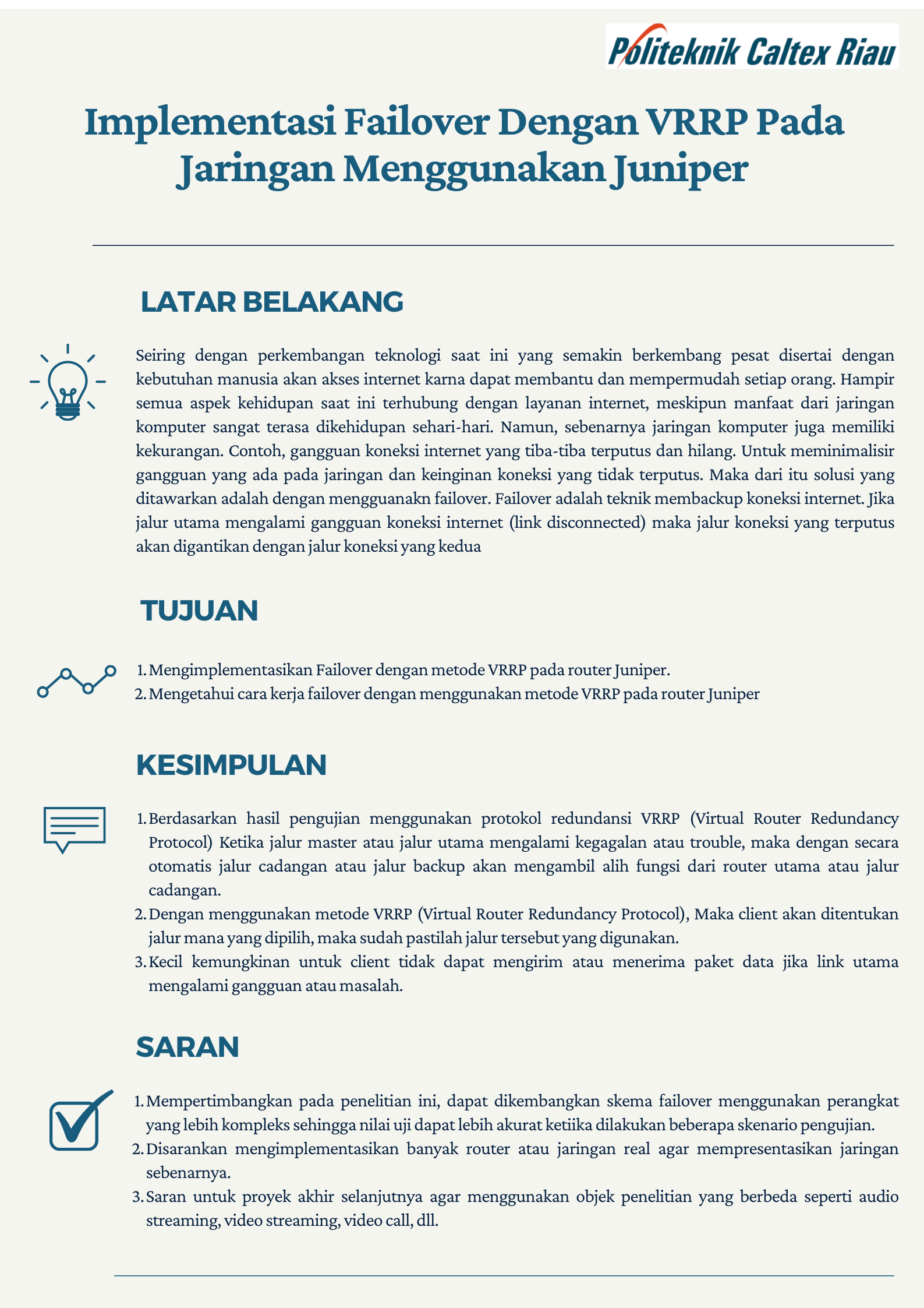 Kata Kunci: Failover, Virtual Router Redundacy Protocol (VRRP), Juniper.