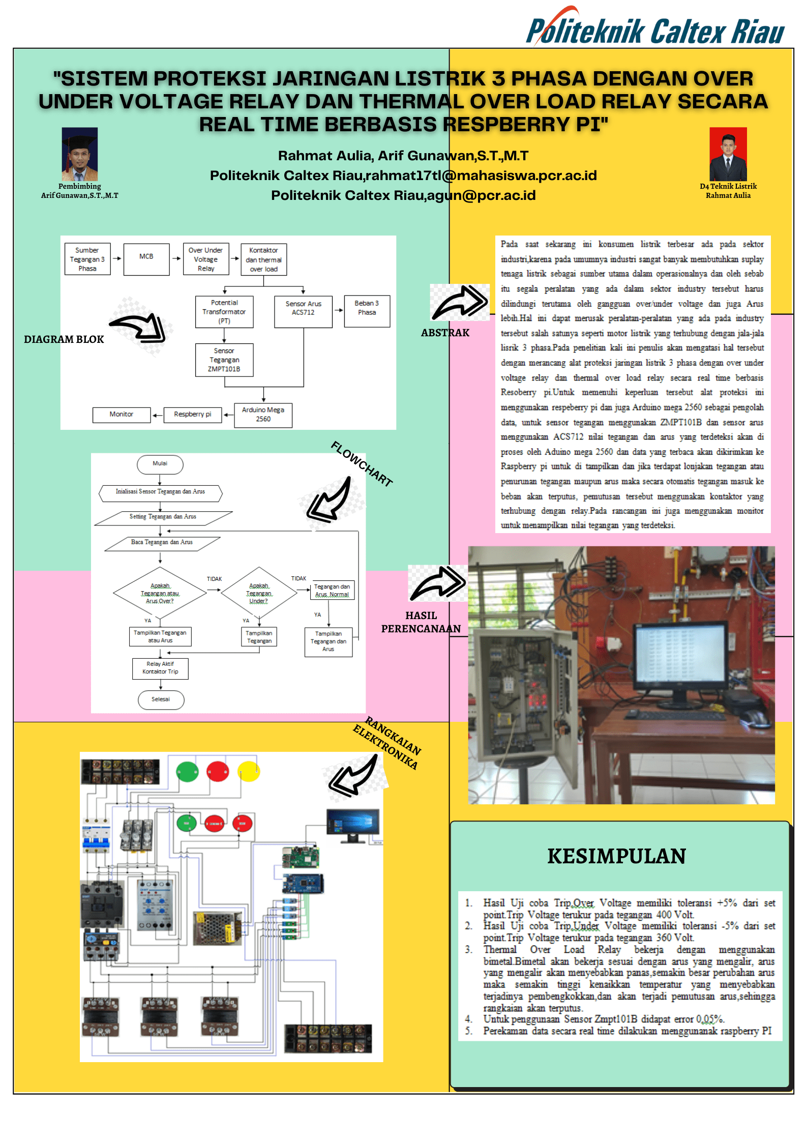 Sistem Proteksi Jaringan Listrik 3 Phasa Dengan Over Under Voltage Relay Dan Thermal Over Load Relay Secara Real Time Berbasis Respberry Pi Secara Realtime
