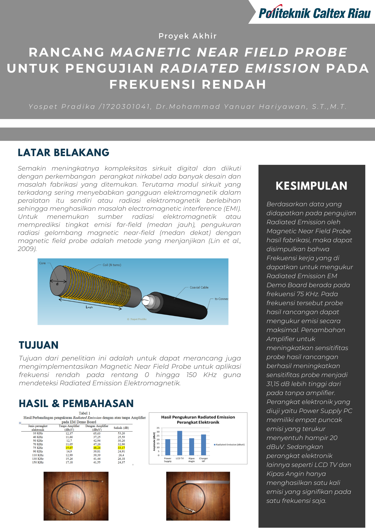 Kata kunci : Electromagnetic Interference, Radiated Emission, Magnetic Near Field Probe, Amplifier.