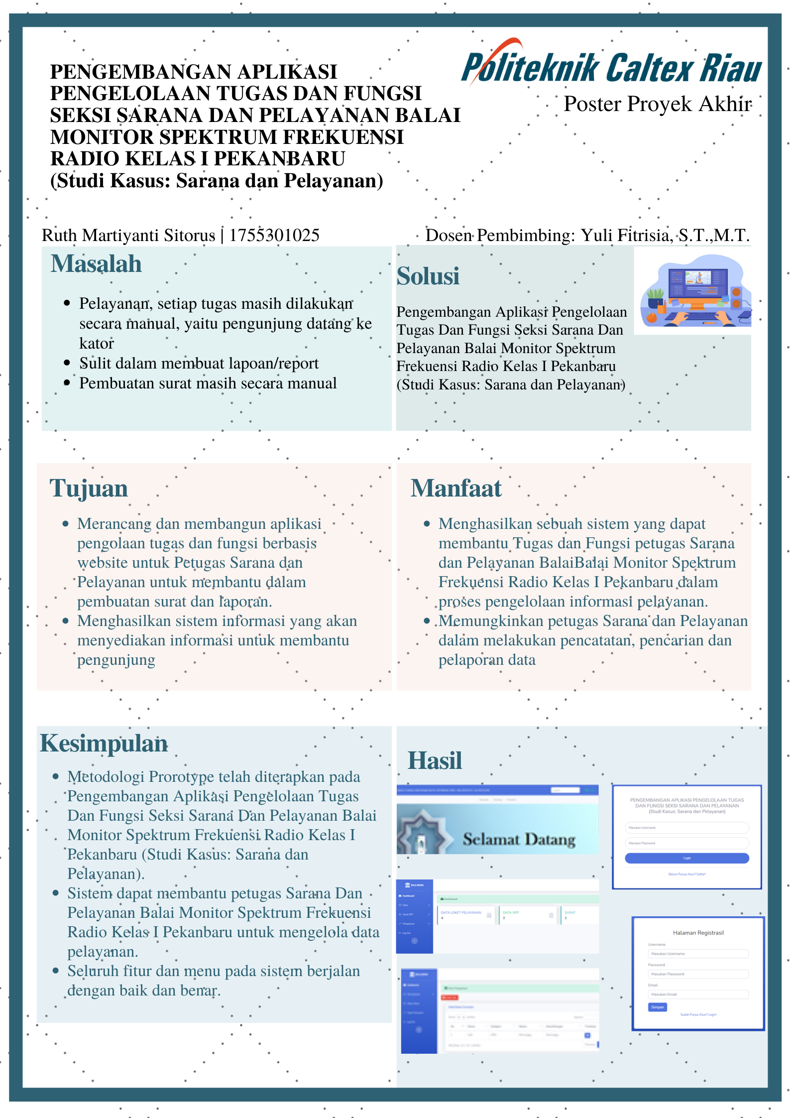 Pengembangan Aplikasi Pengelolaan Tugas Dan Fungsi Seksi Sarana Dan Pelayanan Balai Monitor Spektrum Frekuensi Radio Kelas I Pekanbaru (Studi Kasus: Sarana Dan Pelayanan)