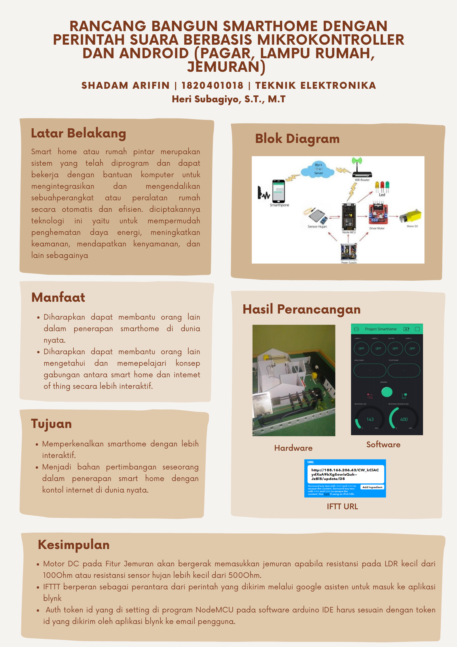 Kata Kunci: Smarthome, Internet of Thing, Node MCU, Arduino, Sensor.