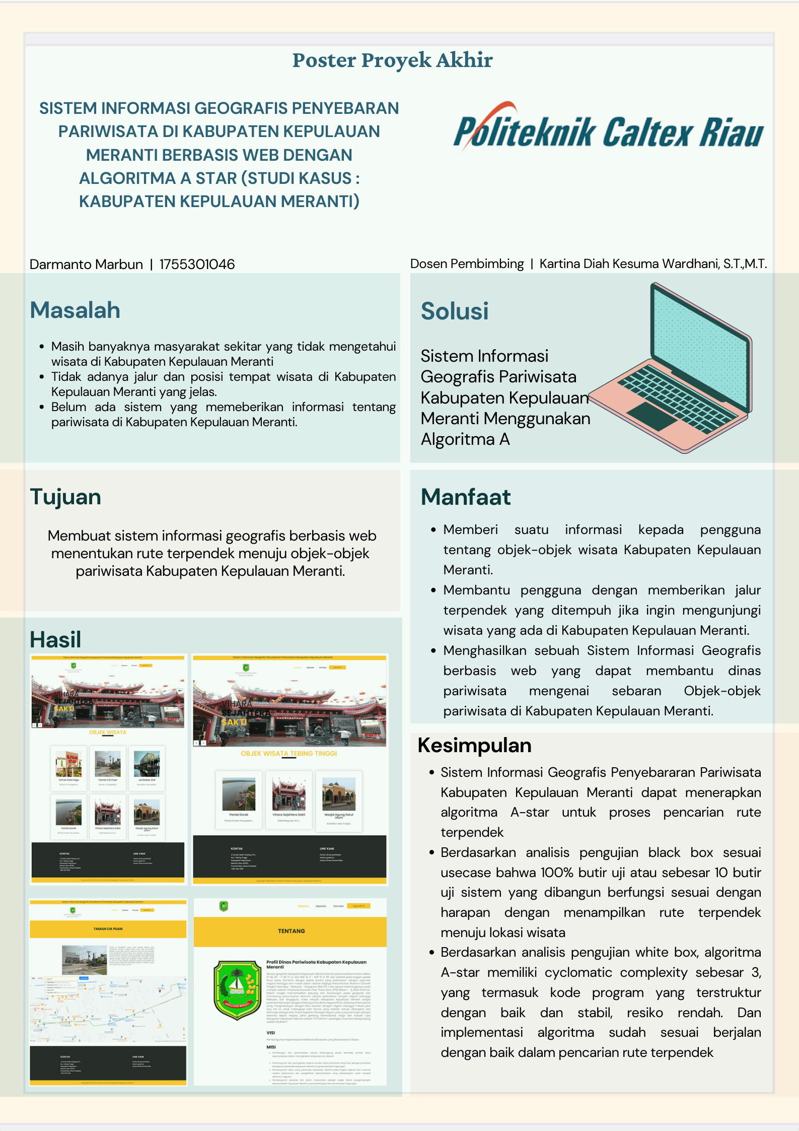 Sistem Informasi Geografis Penyebaran Pariwisata Kabupaten Kepulauan Meranti Berbasis WEB dengan Algoritma A Star (Studi Kasus : Kabupaten Kepulauan Meranti)