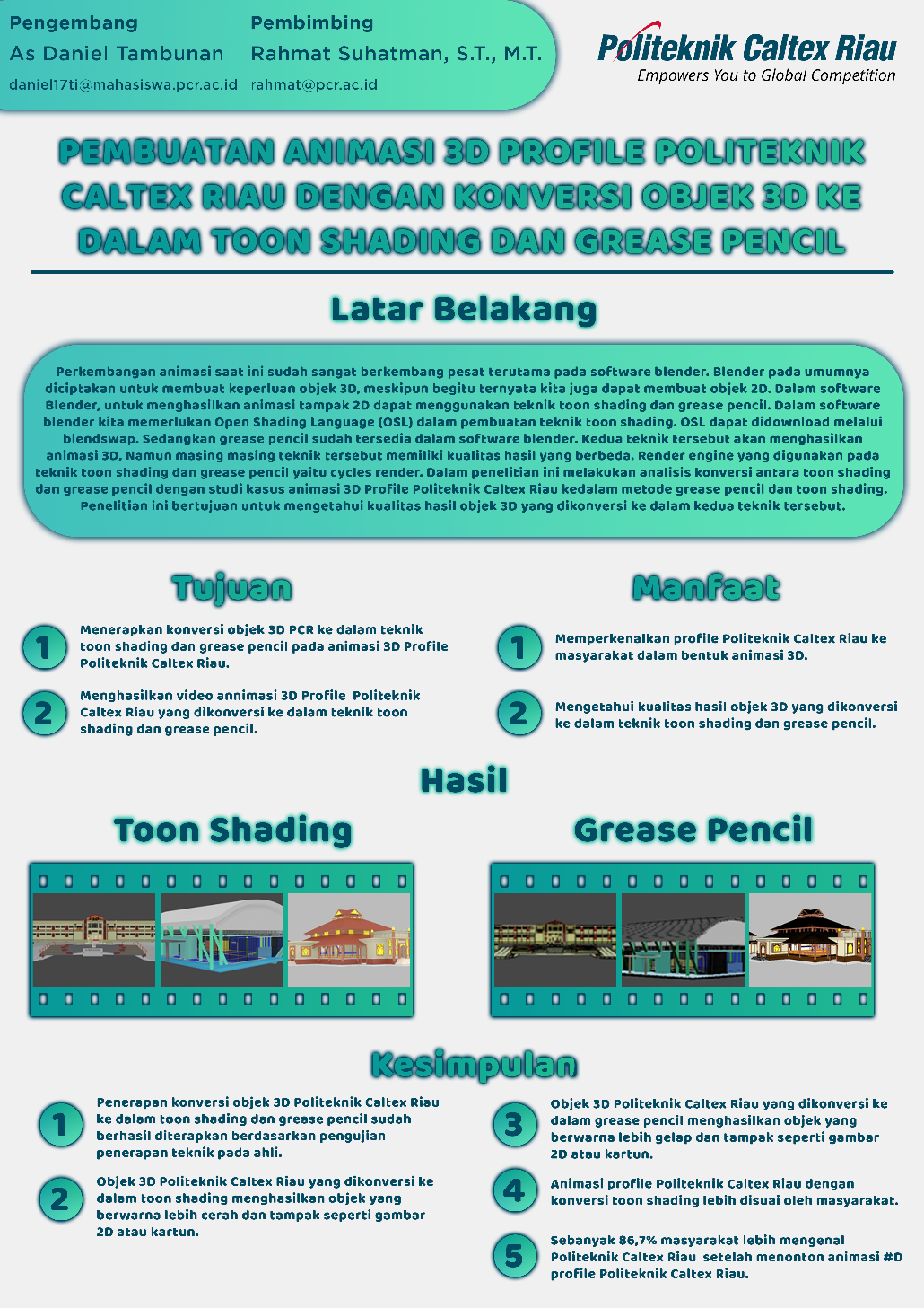 Pembuatan Animasi 3D Profile Politeknik Caltex Riau dengan Konversi Objek 3D ke dalam Toon Shading dan Grease Pencil