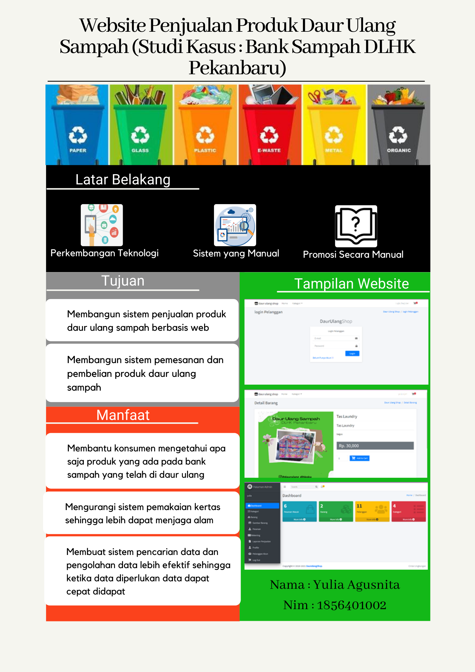 Kata Kunci: Website, Bank Sampah, Produk Daur Ulang, database.