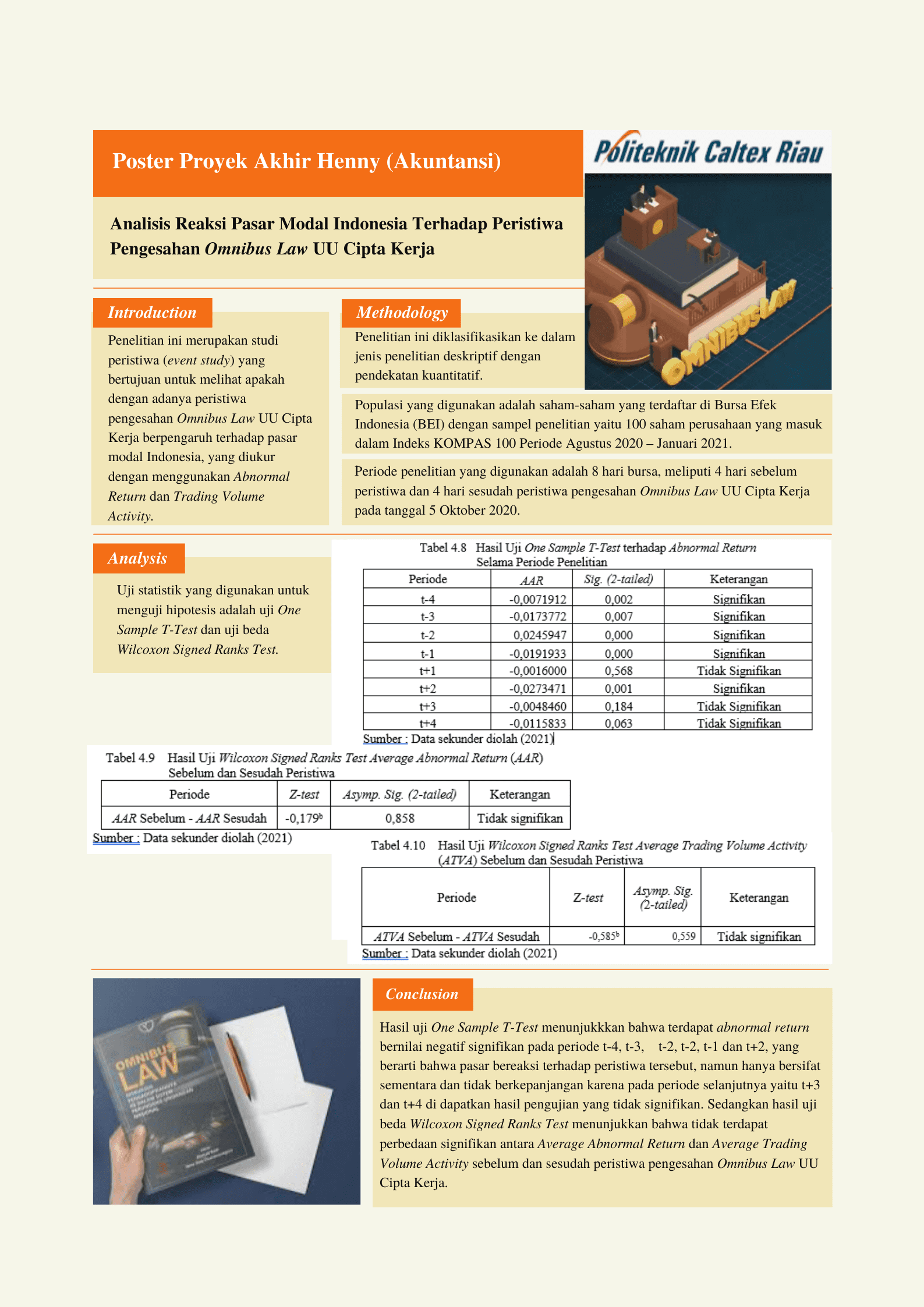 Kata Kunci: Event Study, Abnormal Return, Trading Volume Activity, Omnibus Law UU Cipta Kerja.