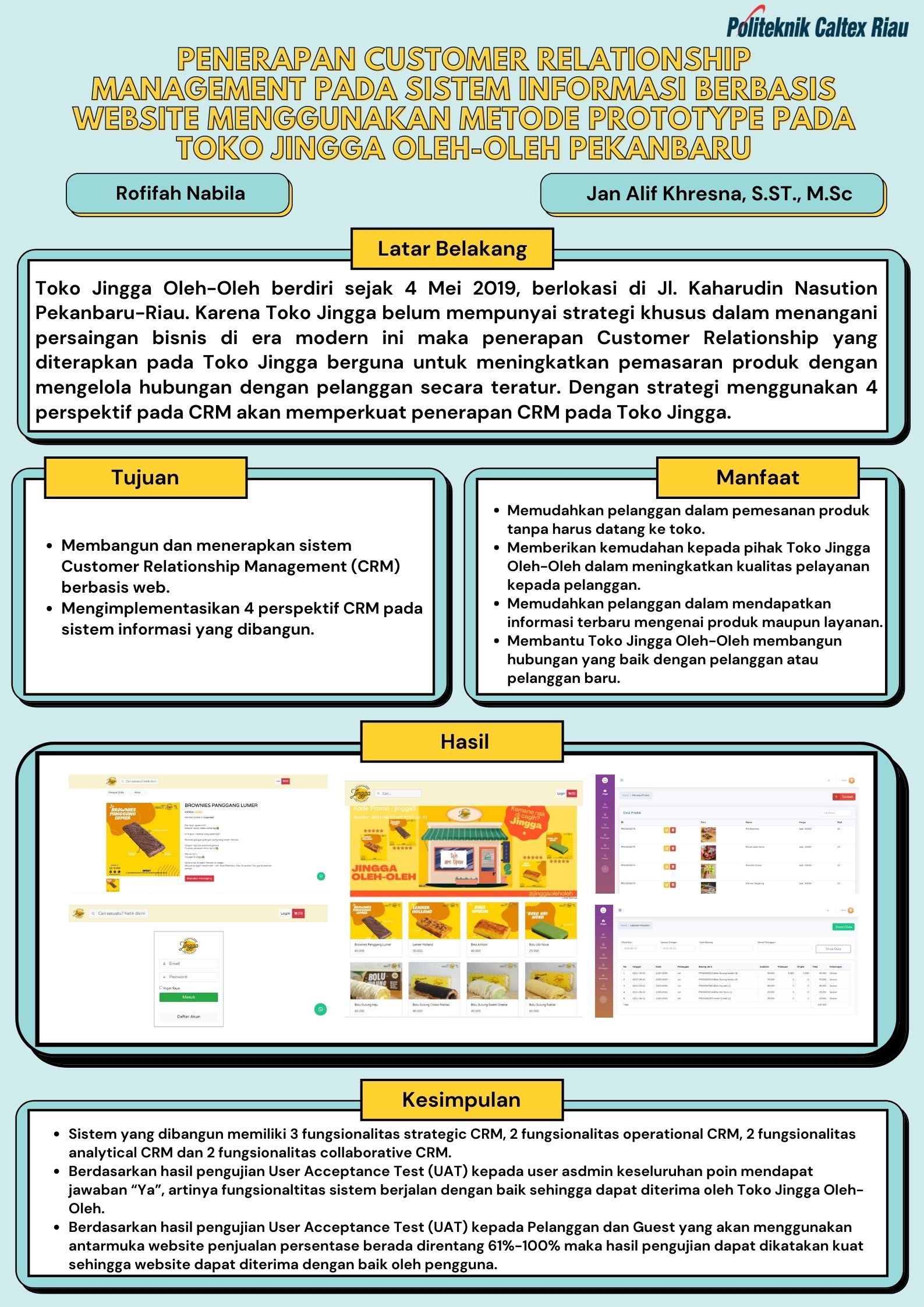 Penerapan Customer Relationship Management Pada Sistem Informasi Berbasis Website Menggunakan Metode Prototype (Studi Kasus Toko Jingga Oleh-Oleh Pekanbaru)