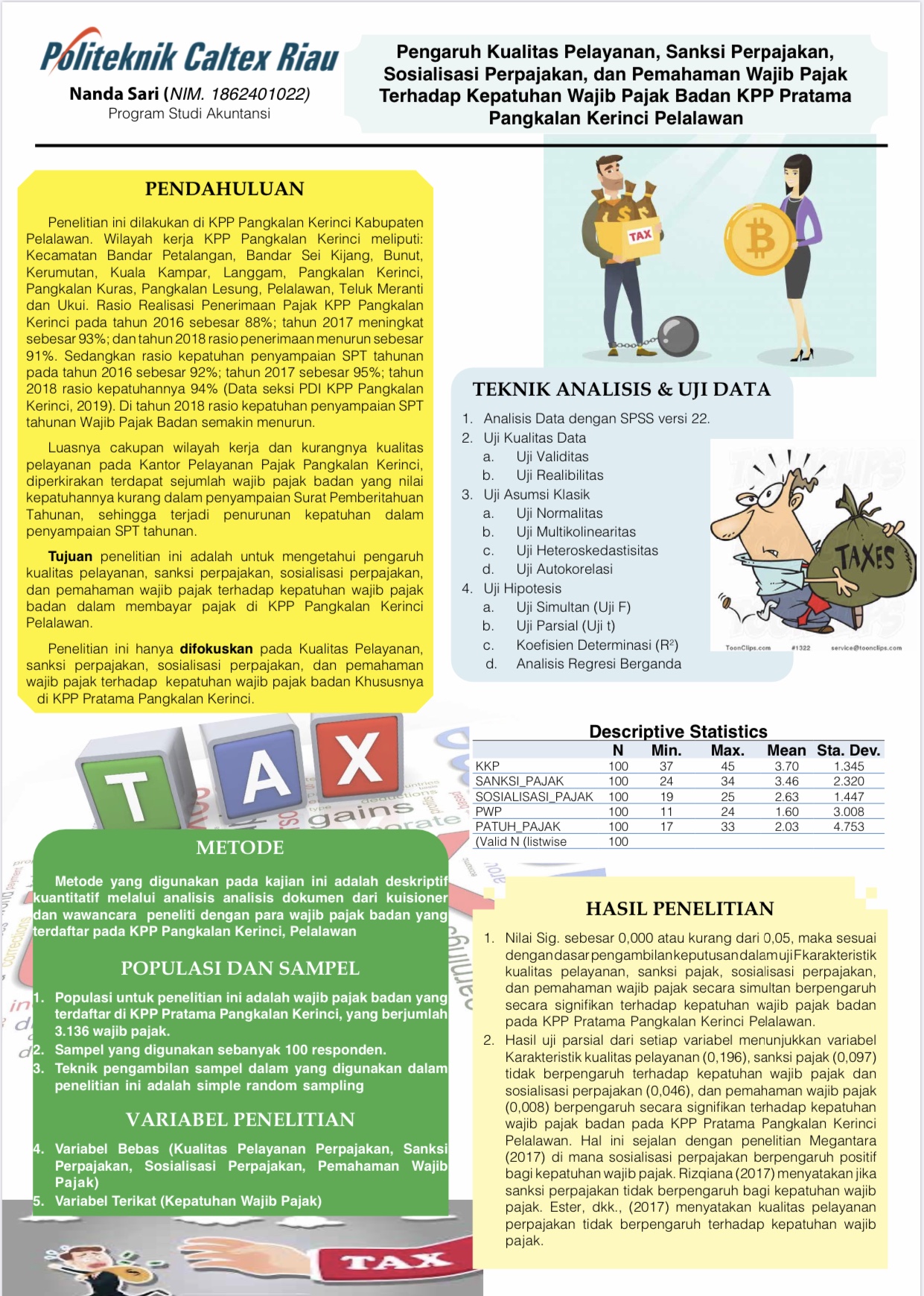 Pengaruh Kualitas Pelayanan, Sanksi Perpajakan, Sosialisasi Perpajakan, Pemahaman Wajib Pajak Terhadap Kepatuhan Wajib Pajak Badan KPP Pratama Pangkalan Kerinci Kabupaten Pelalawan