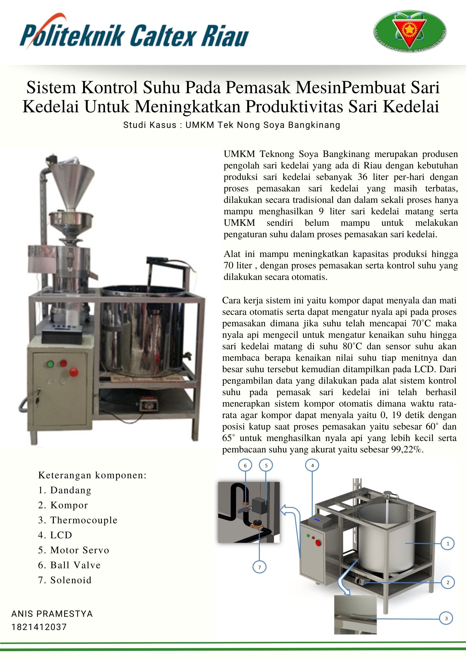 Sistem Kontrol Suhu pada Pemasak Mesin Peembuat Sari Kedelai Untuk Meningkatkan Kualitas Produktivitas Sari Kedelai
