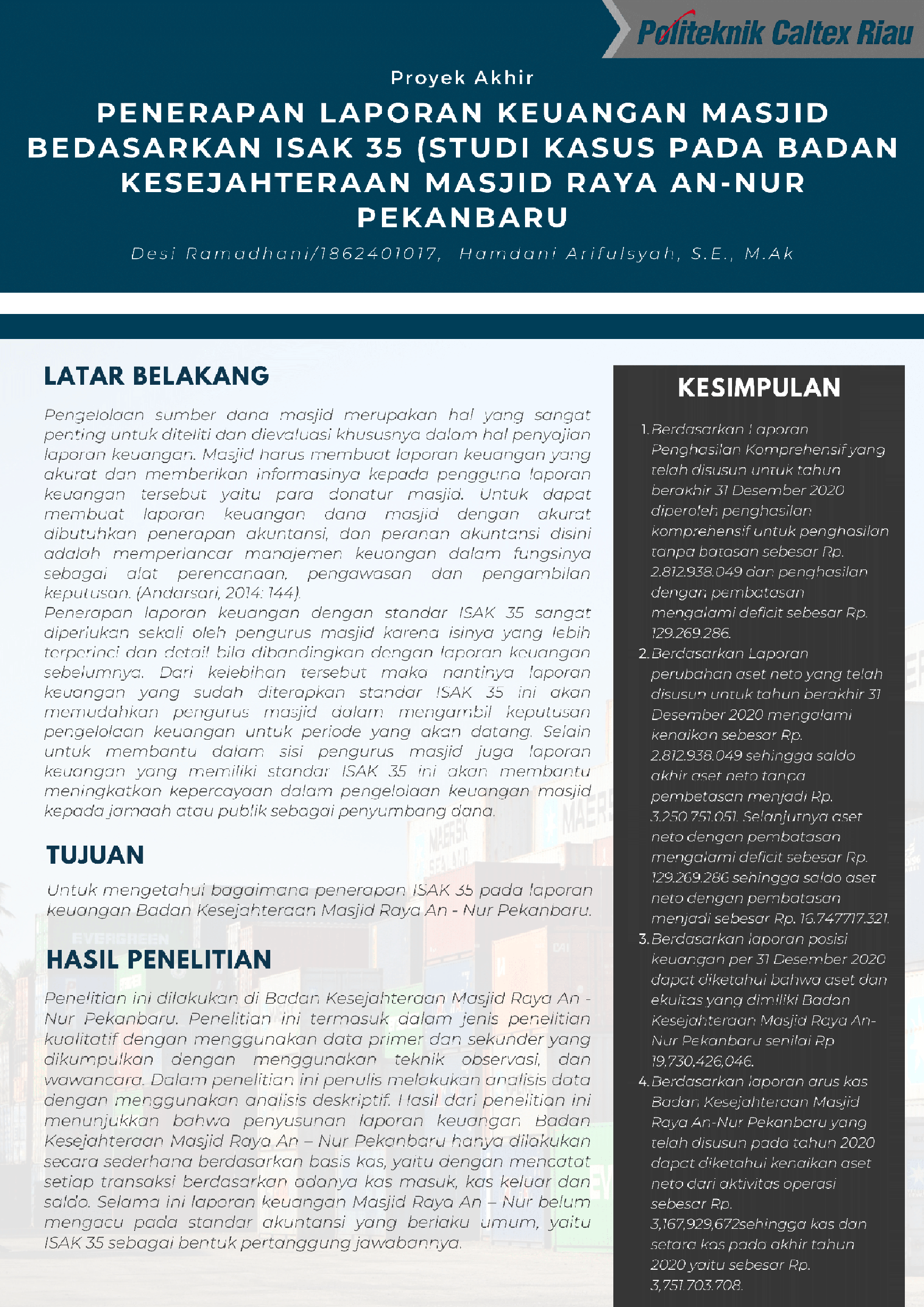 Penerapan Laporan Keuangan Masjid Bedasarkan ISAK 35 (Studi Kasus Pada Badan Kesejahteraan Masjid Raya An-Nur Pekanbaru)