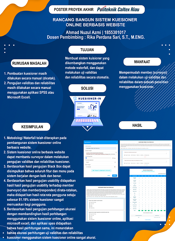 Kata Kunci: Kuesioner, Validitas, Reliabilitas, Waterfall.