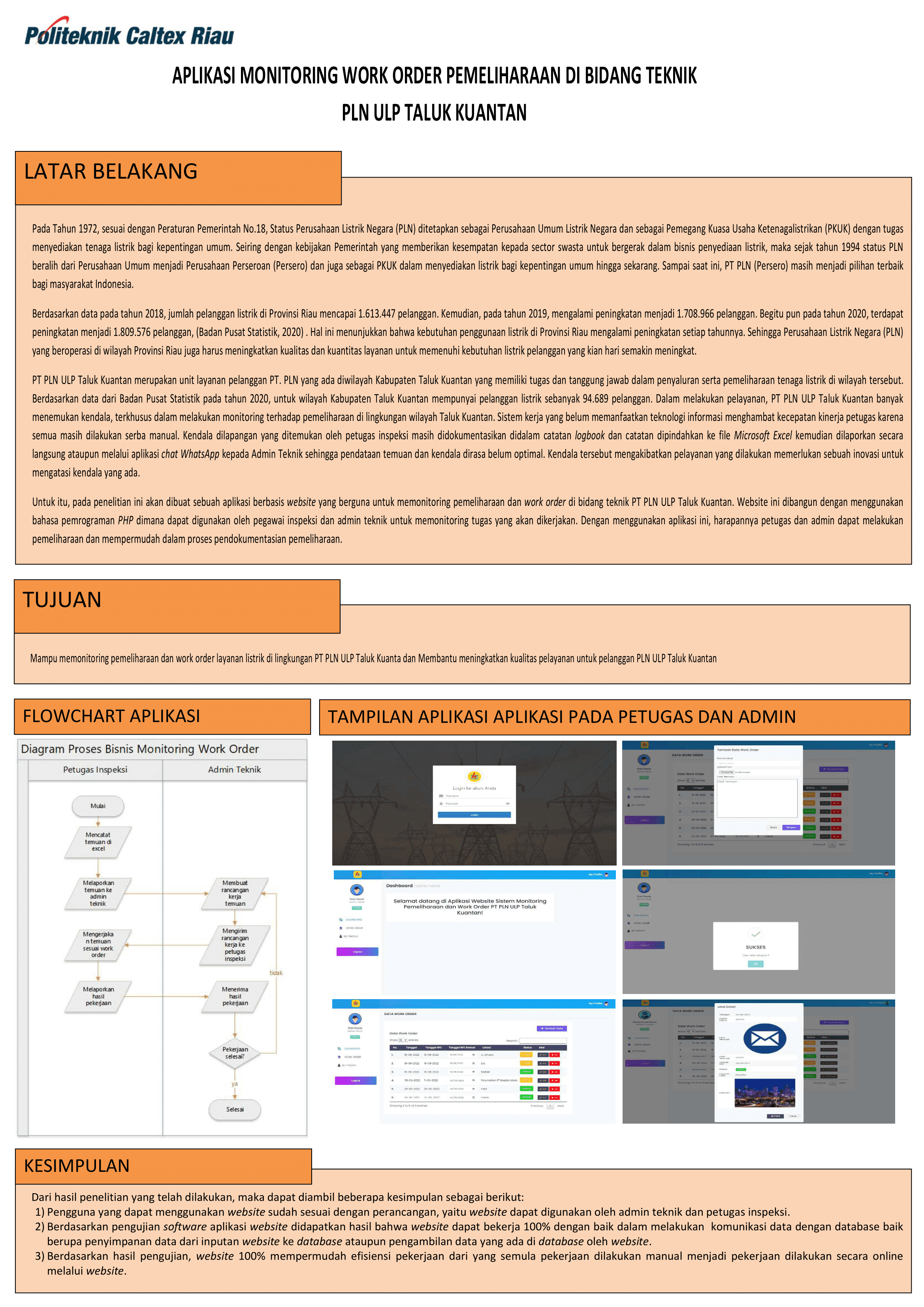 Aplikasi Monitoring Pemeliharaan Dan Work Order Di Lingkungan Bidang Teknik Pln Ulp Taluk Kuantan