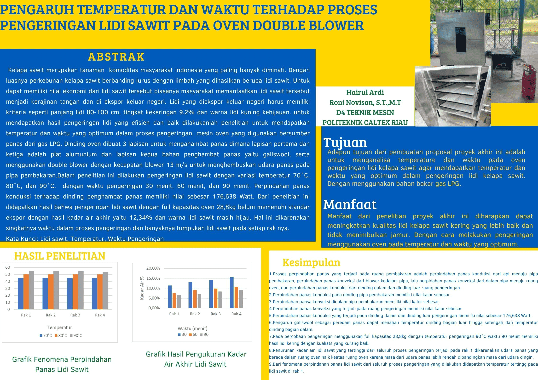 Pengaruh Temperatur Dan Waktu Terhadap Proses Pengeringan Lidi Sawit Pada Oven Double Blower