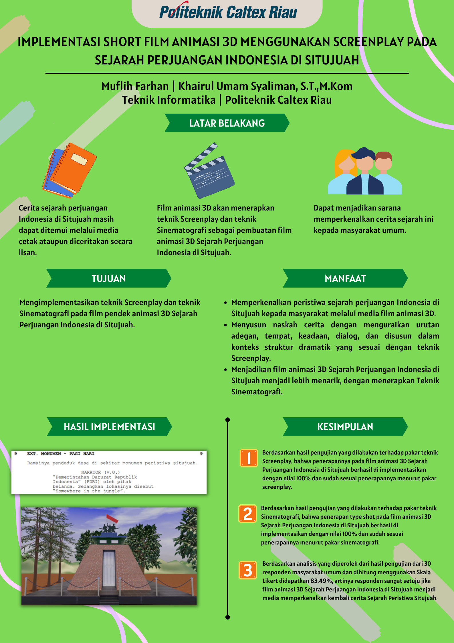 Implementasi Short Film Animasi 3D Menggunakan Screenplay Pada Sejarah Perjuangan Indonesia Di Situjuah