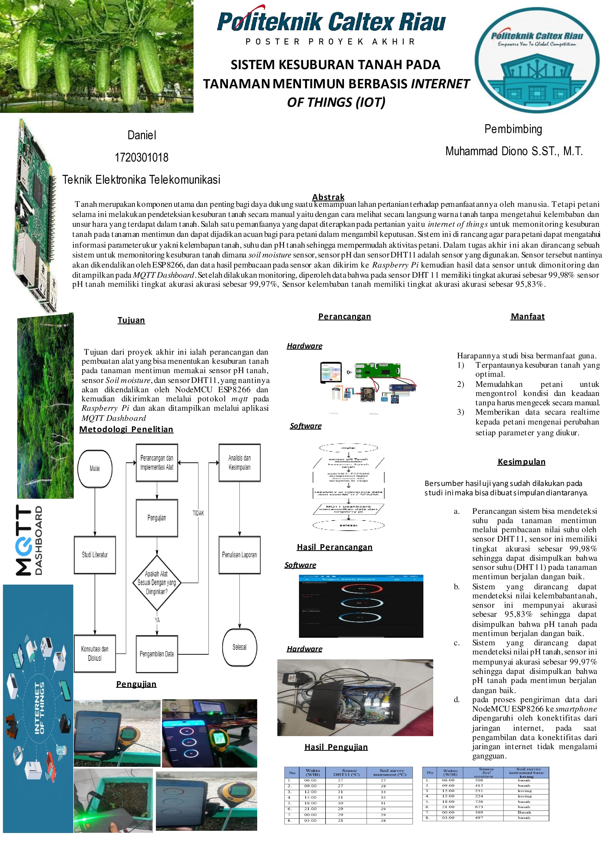 parameter ukur yakni kelembapan tanah, suhu dan pH tanah sehingga