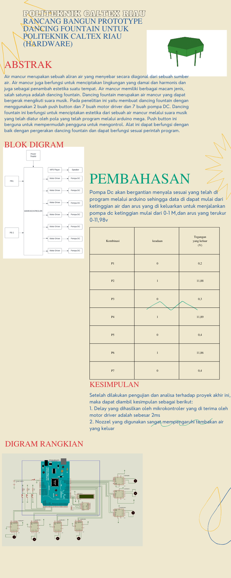 Rancang Bangun Prototipe Dancing Fountain Untuk Politeknik Caltex Riau (Hardware)