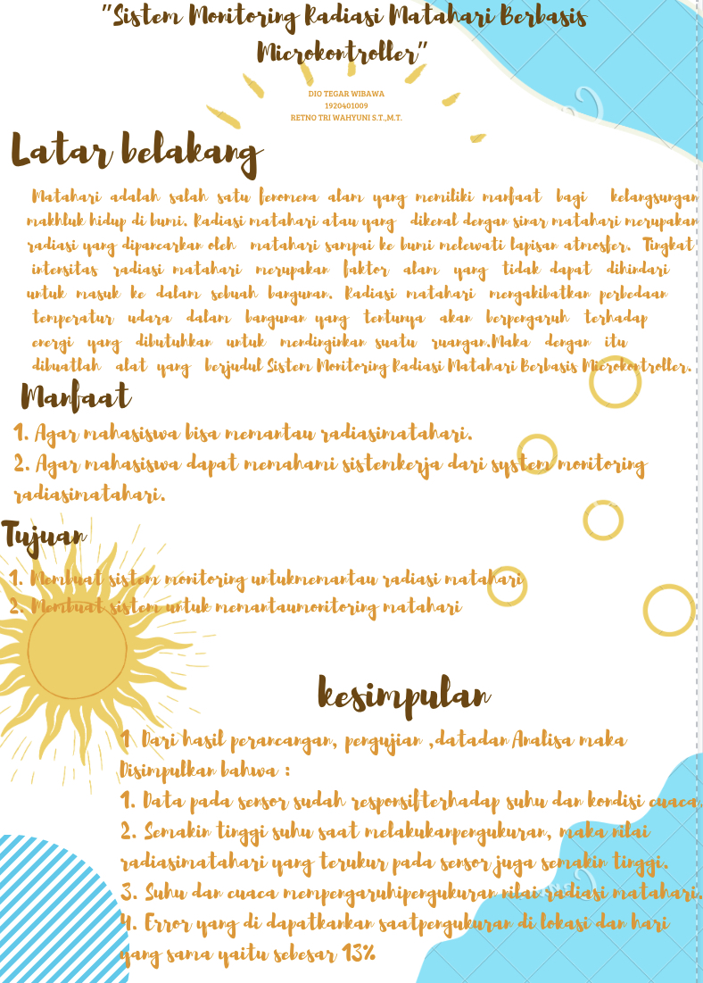 Sistem monitoring pada radiasi matahari berbasis microkontroller