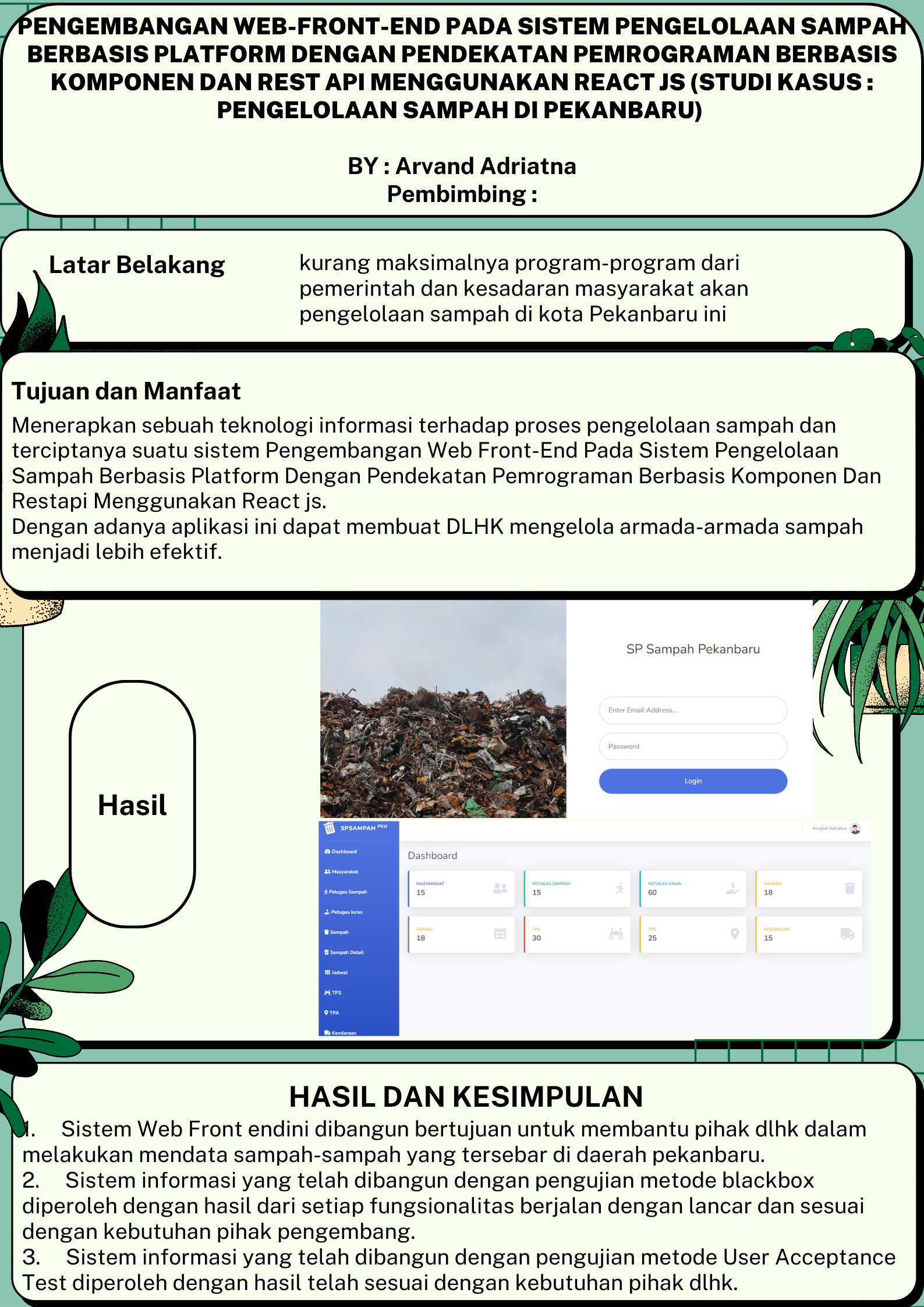 Pengembangan Web-Front-End Pada Sistem Pengelolaan Sampah Berbasis Platform Dengan Pendekatan Pemrograman Berbasis Komponen Dan Rest Api Menggunakan React Js (Studi Kasus : Pengelolaan Sampah Di Pekanbaru)