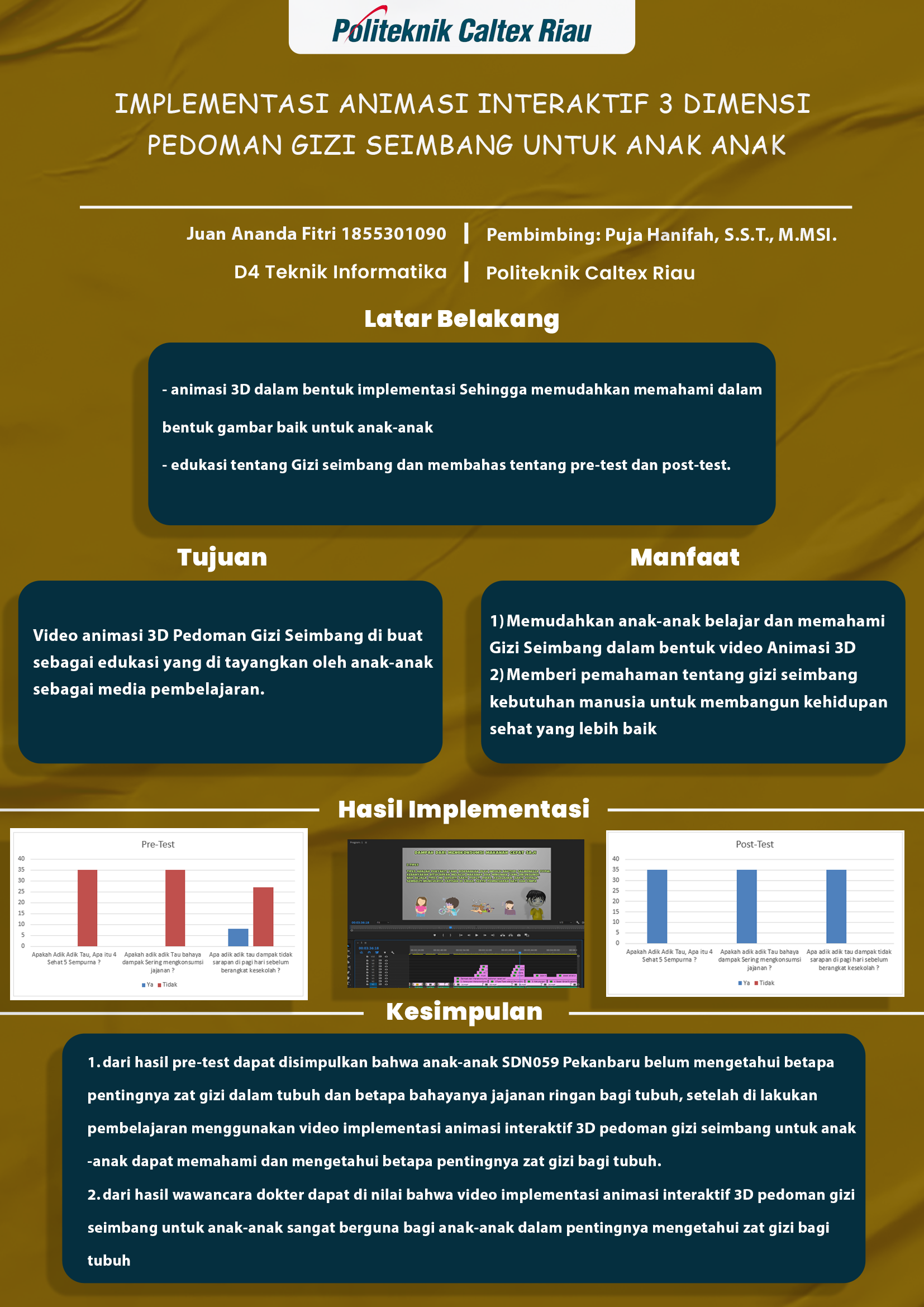 berjudul Implementasi Animasi Interaktif 3 Dimensi Pedoman Gizi Seimbang Untuk anakanak, memudahkan anak-anak belajar dan memahami Gizi Seimbang dalam bentuk video