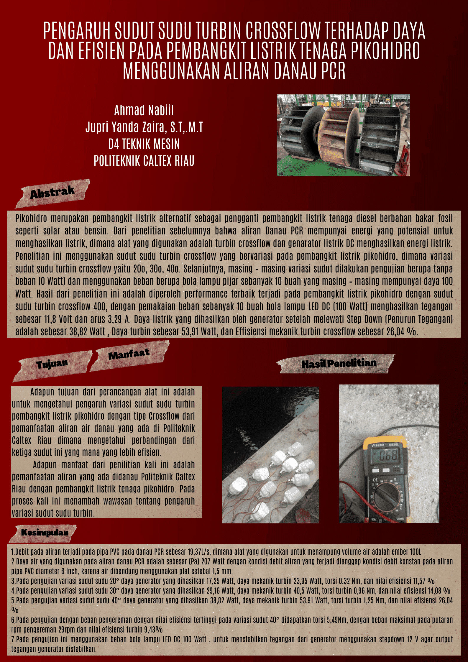 Kata Kunci : Variasi Sudut, Turbin Crossflow, Aliran Danau