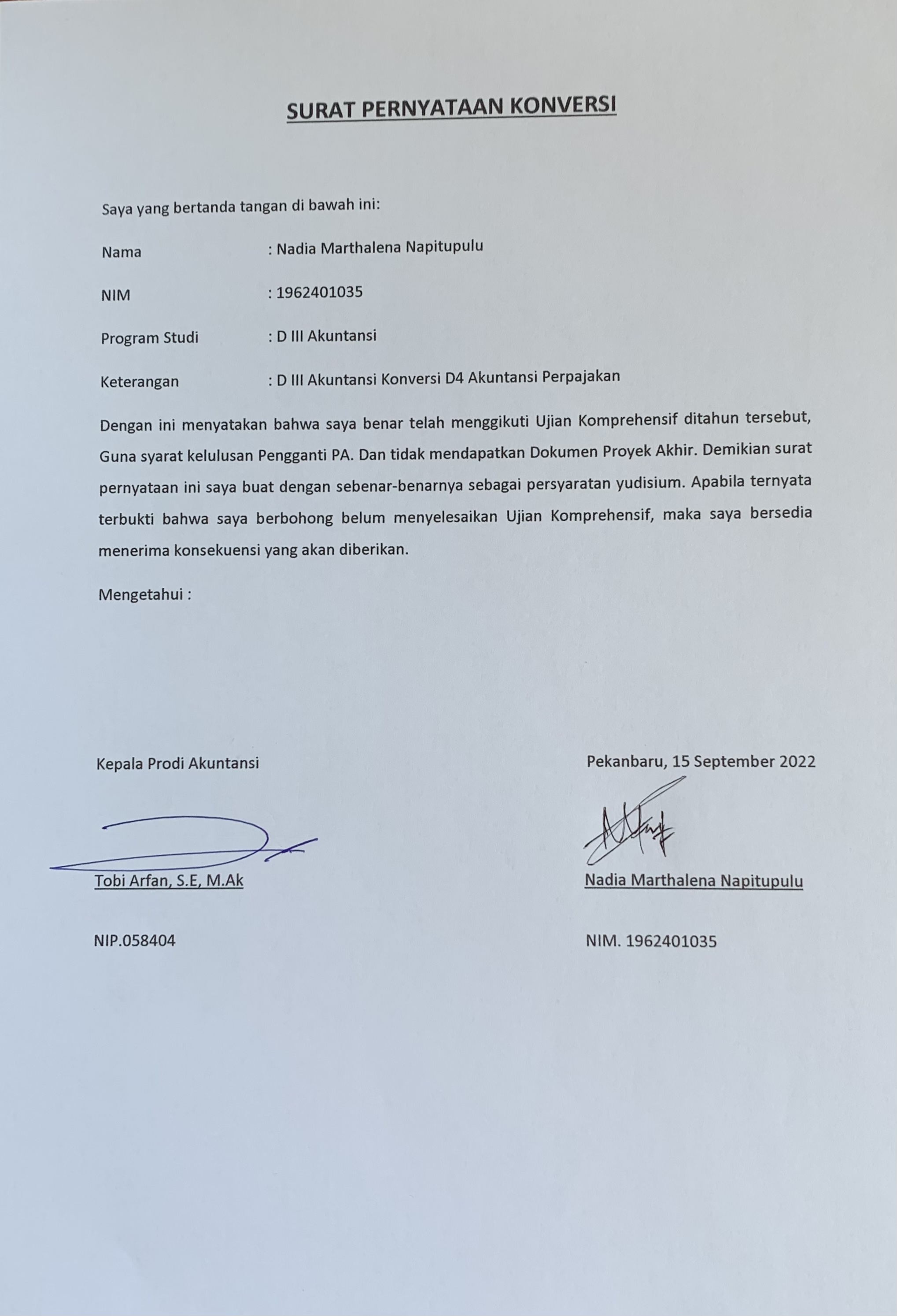 Pernyataan konversi D3 Akuntansi ke D4 Akuntansi Perpajakan